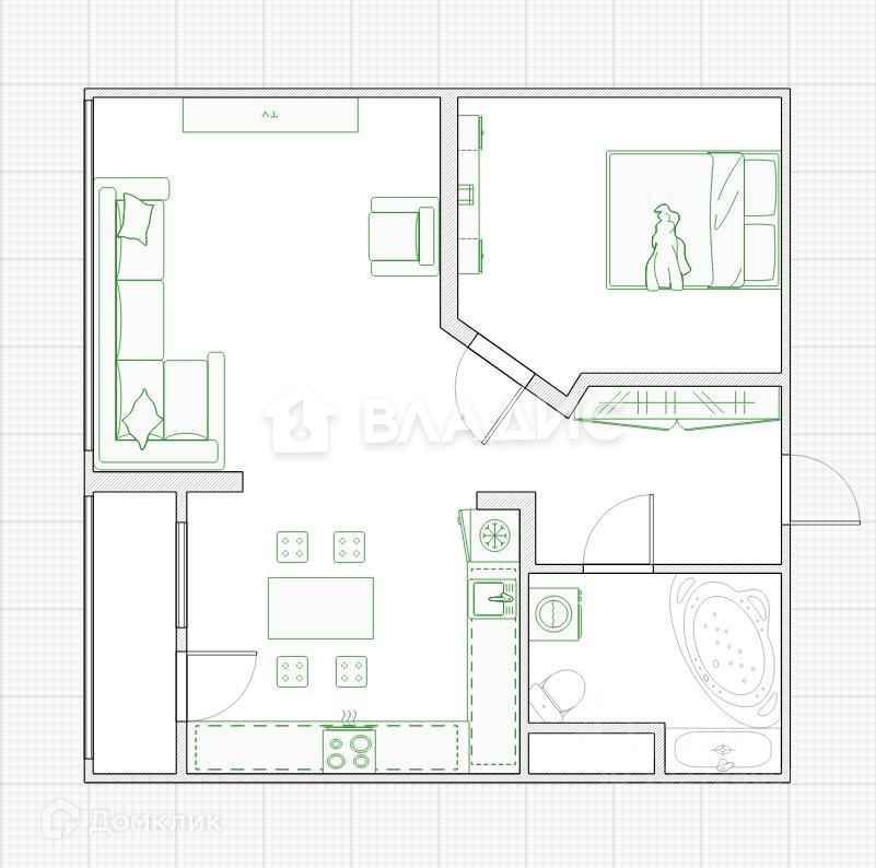 Жилая площадь 24.7 м2