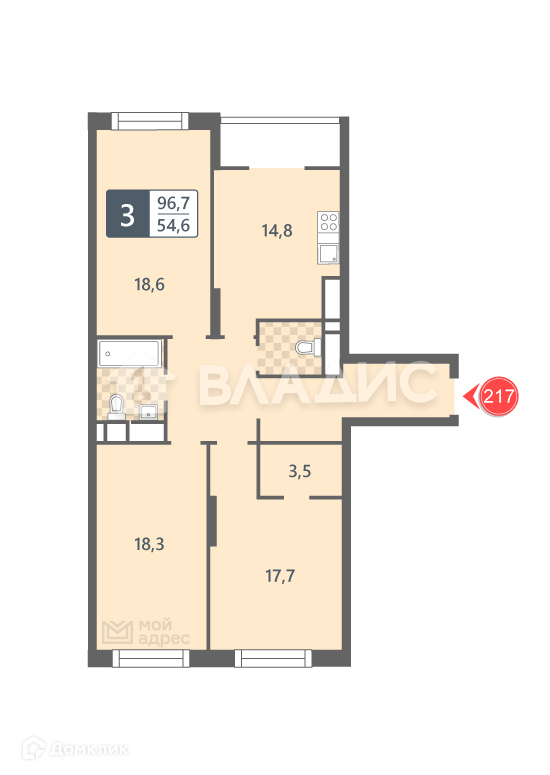 Общая площадь 96.7 м2