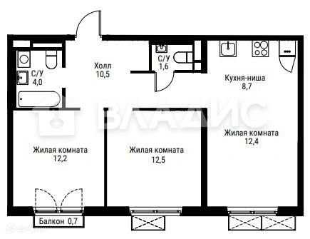Квартира с линейной планировкой, большая кухня-гостиная 21,5м2, две спальни, функциональный холл, два санузла (или один из них можно оборудовать под гардеробную), балкон. Отделка White Box. В квартире установлена домашняя вентиляция.