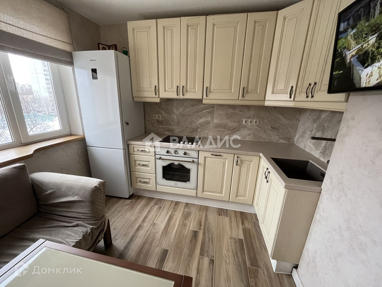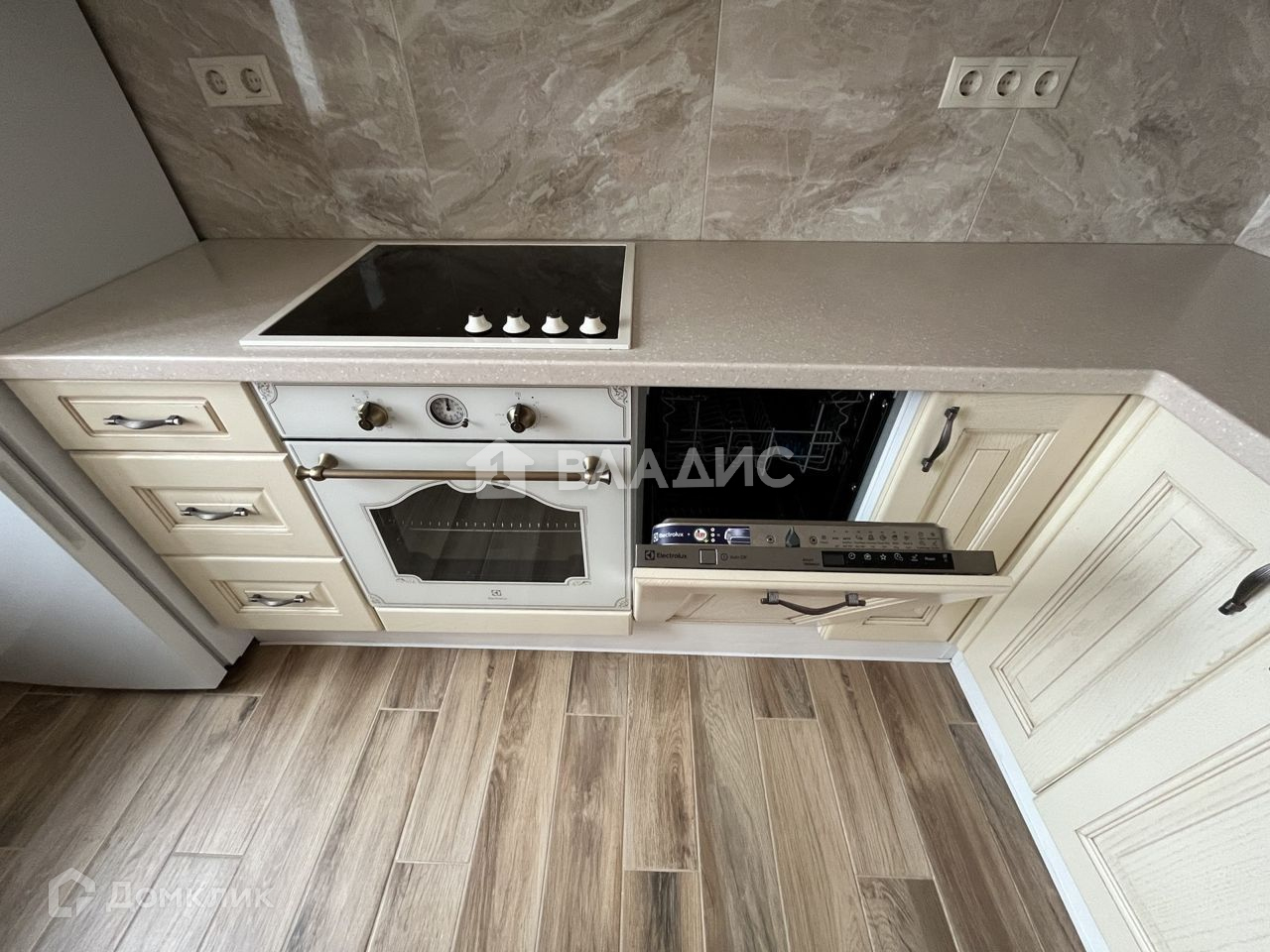 Во всей квартире деревянная мебель и подоконники, все новое. Вся техника тоже новая: холодильник, посудомоечная, плита, вытяжка, стиральная машина, встроенные фильтра для воды. На случай отключения горячей воды - установлен проточный электрический водонагреватель.