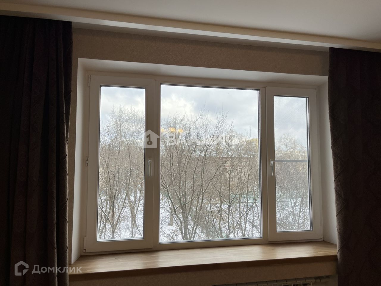 Окна выходят на две стороны во дворы, где много деревьев и летом все утопает в зелени.