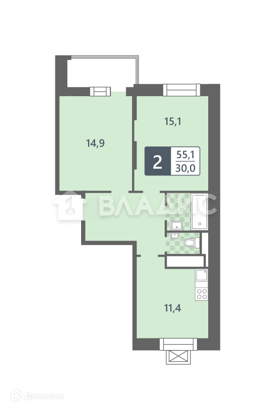 Общая площадь 55.1 м2