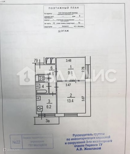 2-комнатная квартира, 38 м2, этаж 12 / 12, на продажу в Москве, 3-й Сетуньский проезд, 8