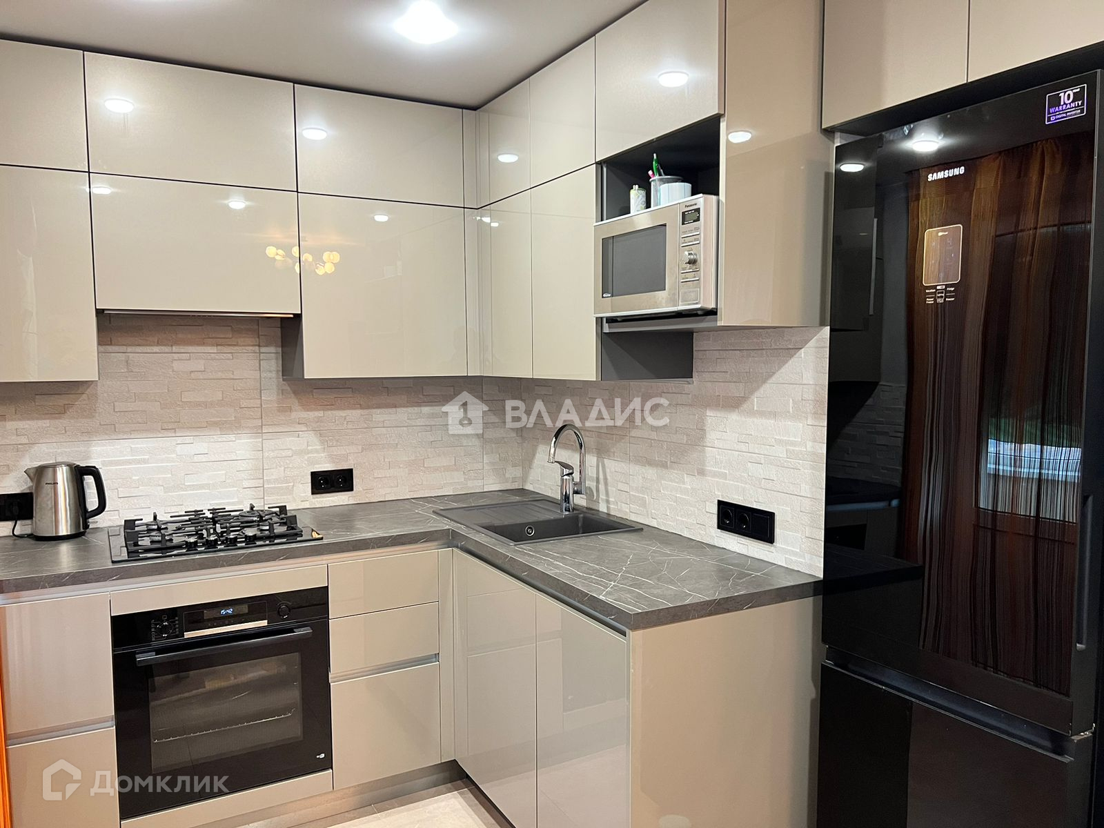 - Кафель в зоне кухни, а также в ванной пол и стены до потолка. Стильная, премиум кухня.