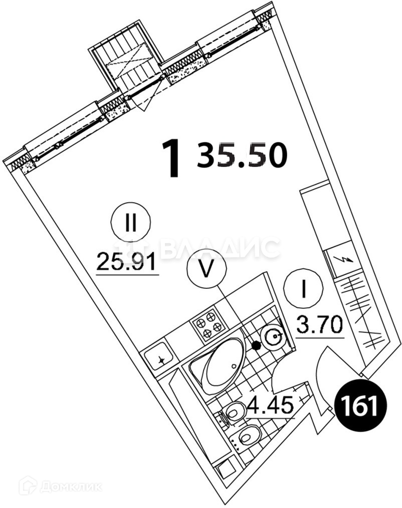 Общая площадь 35.5 м2