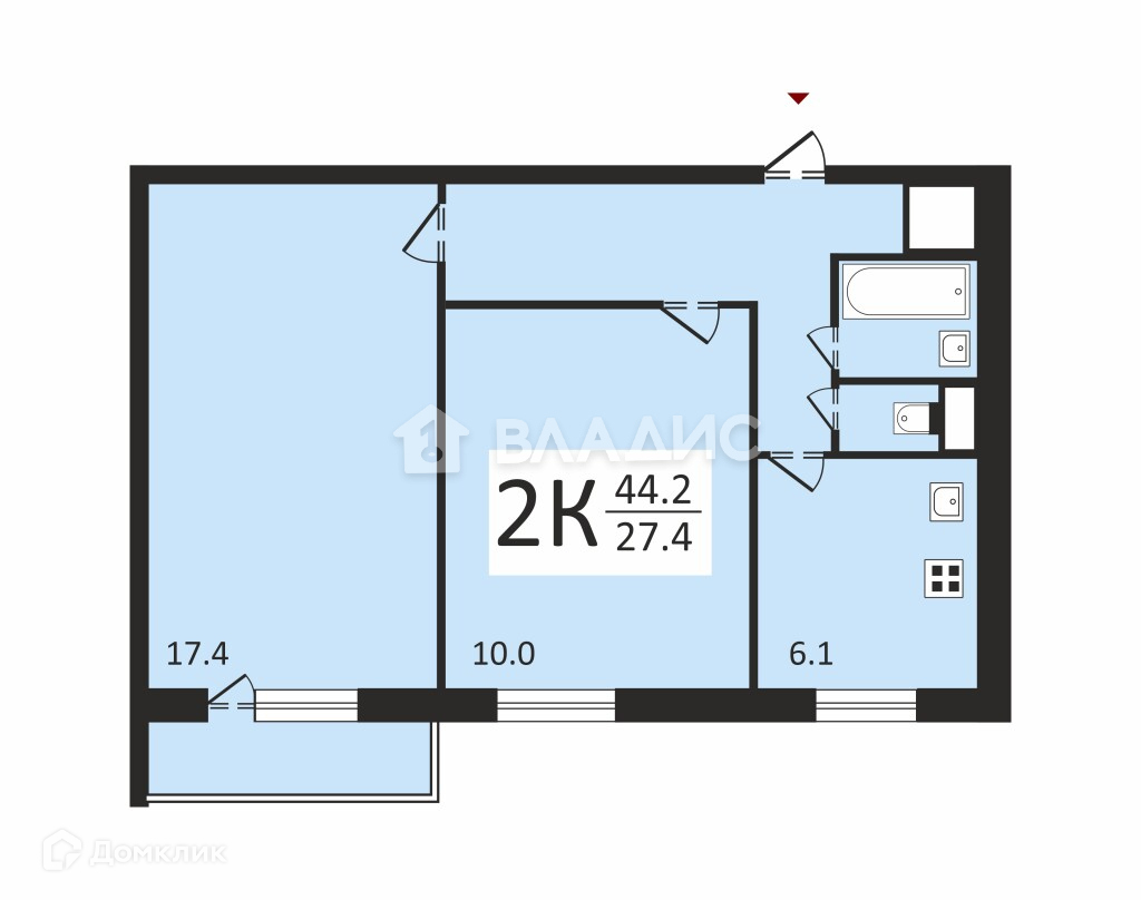 Общая площадь 44.2 м2