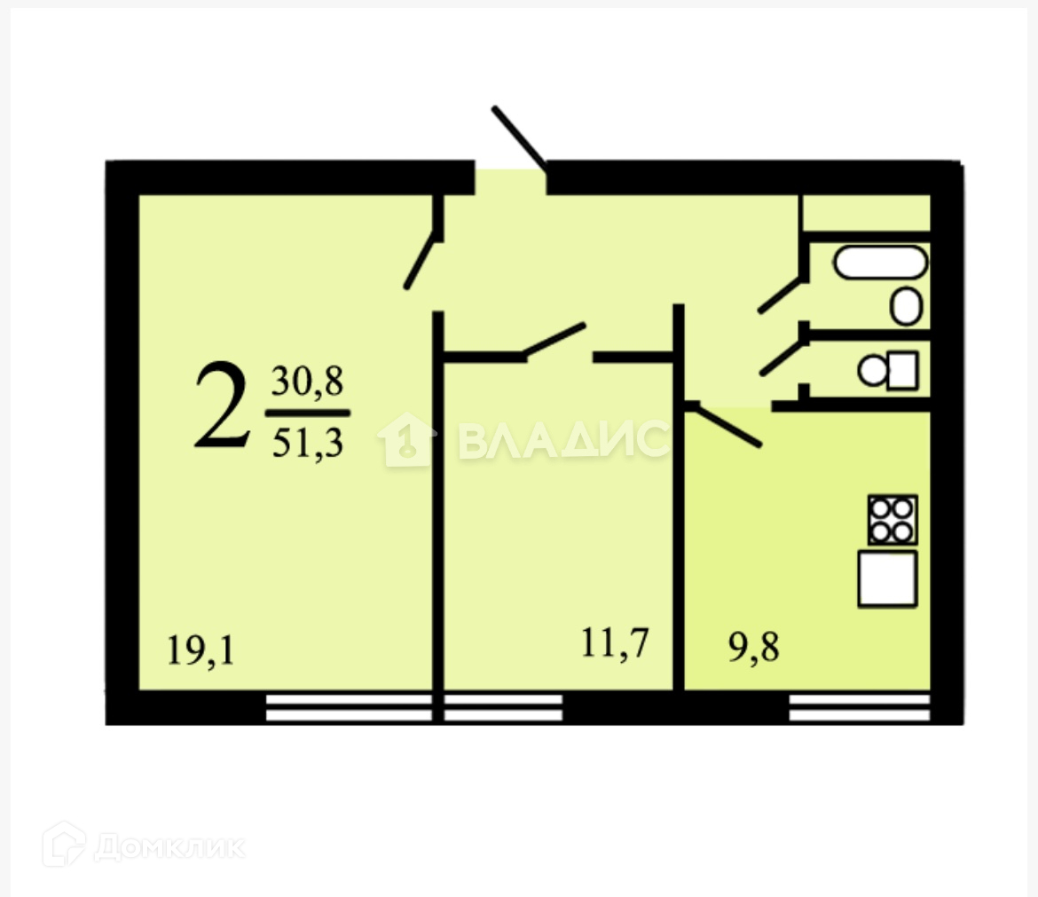 Общая площадь 51.3 м2