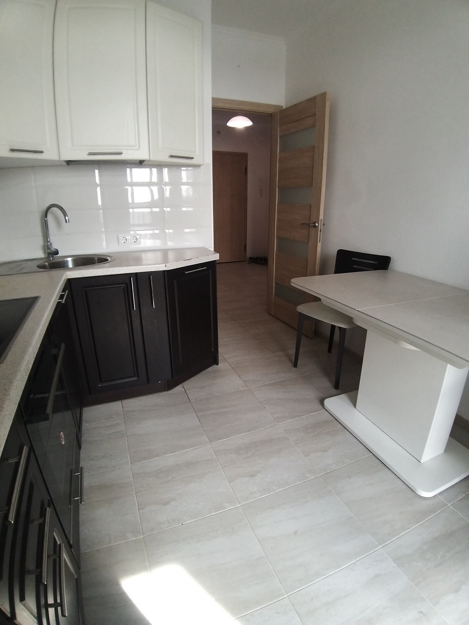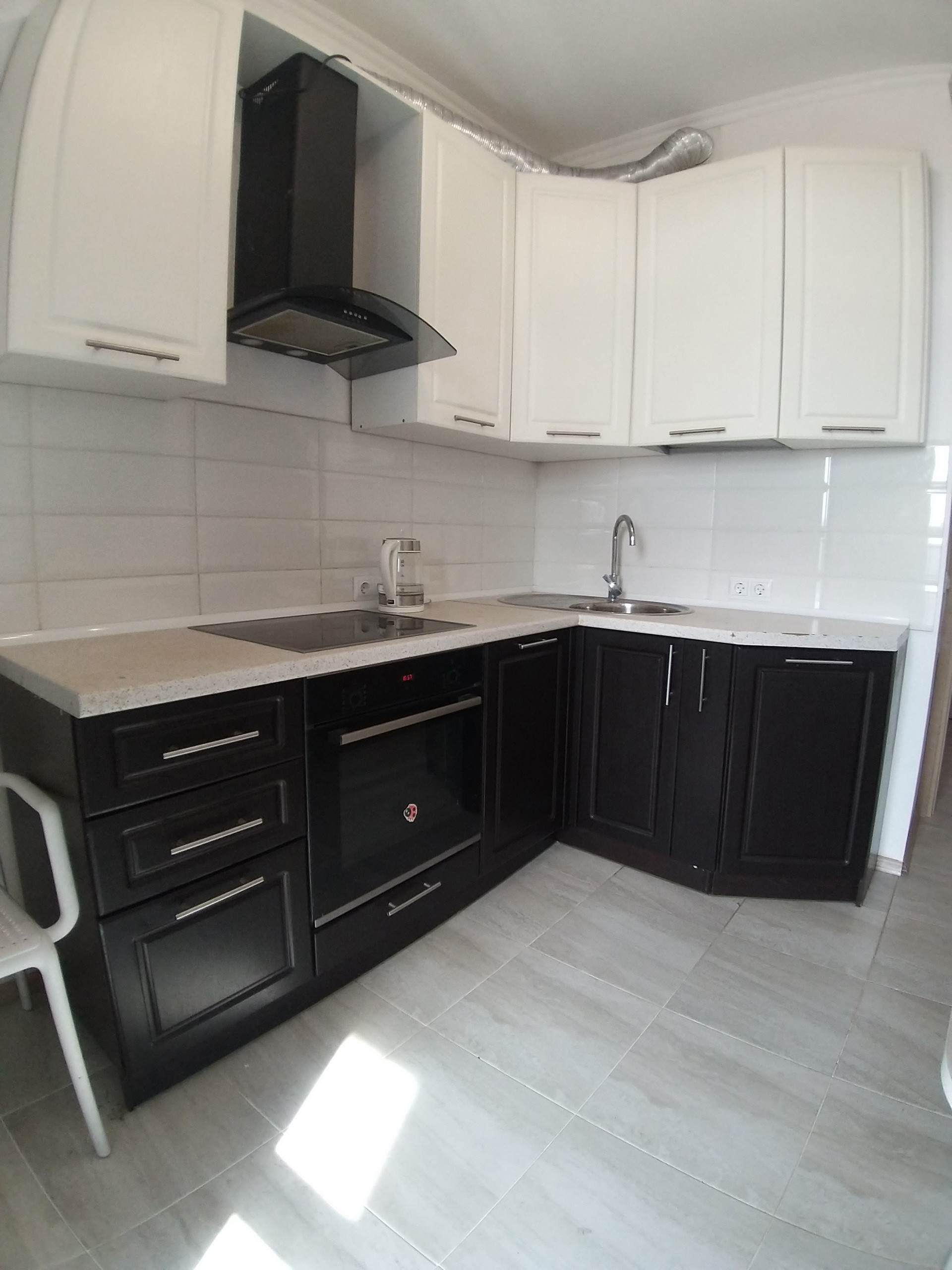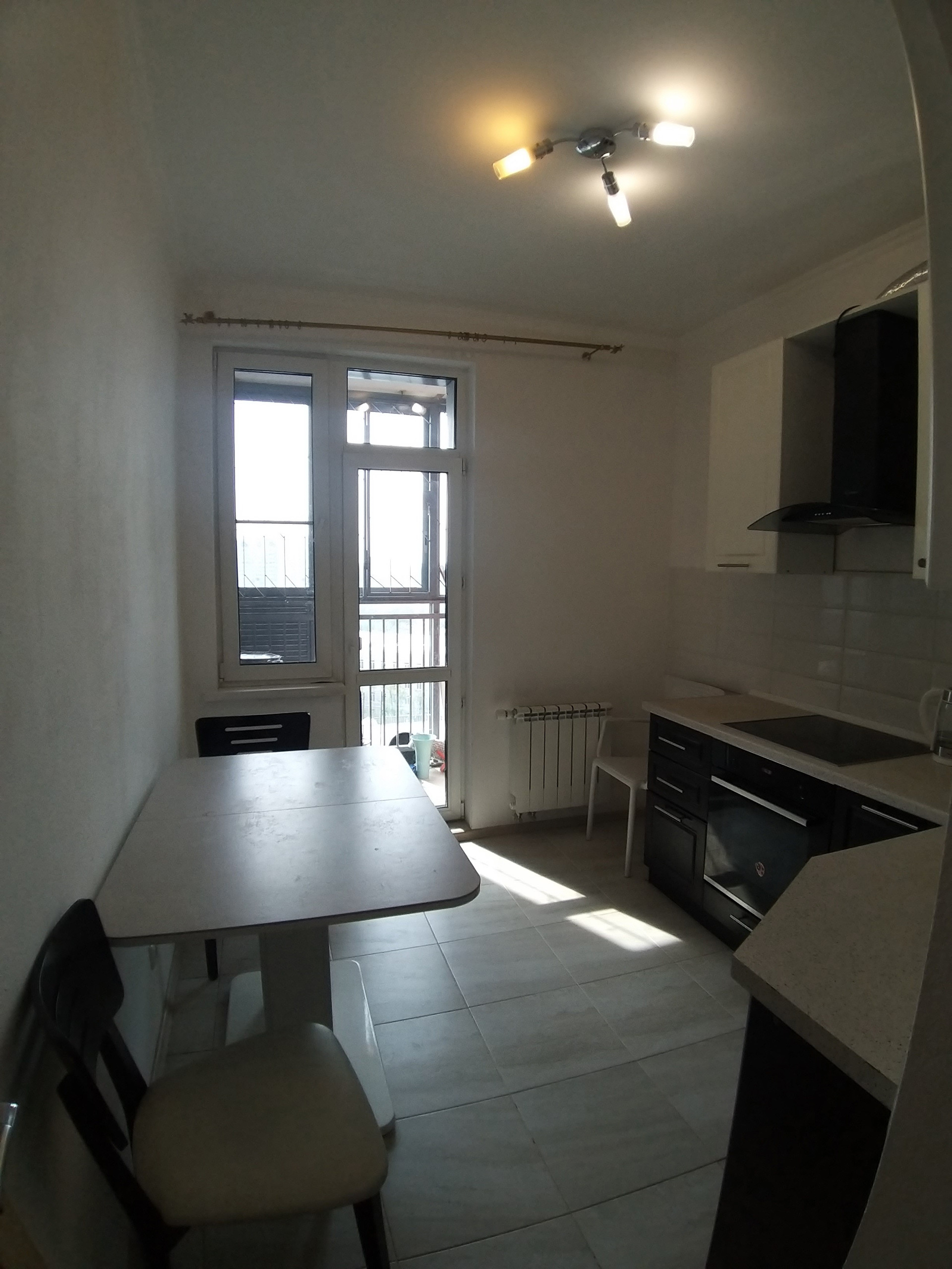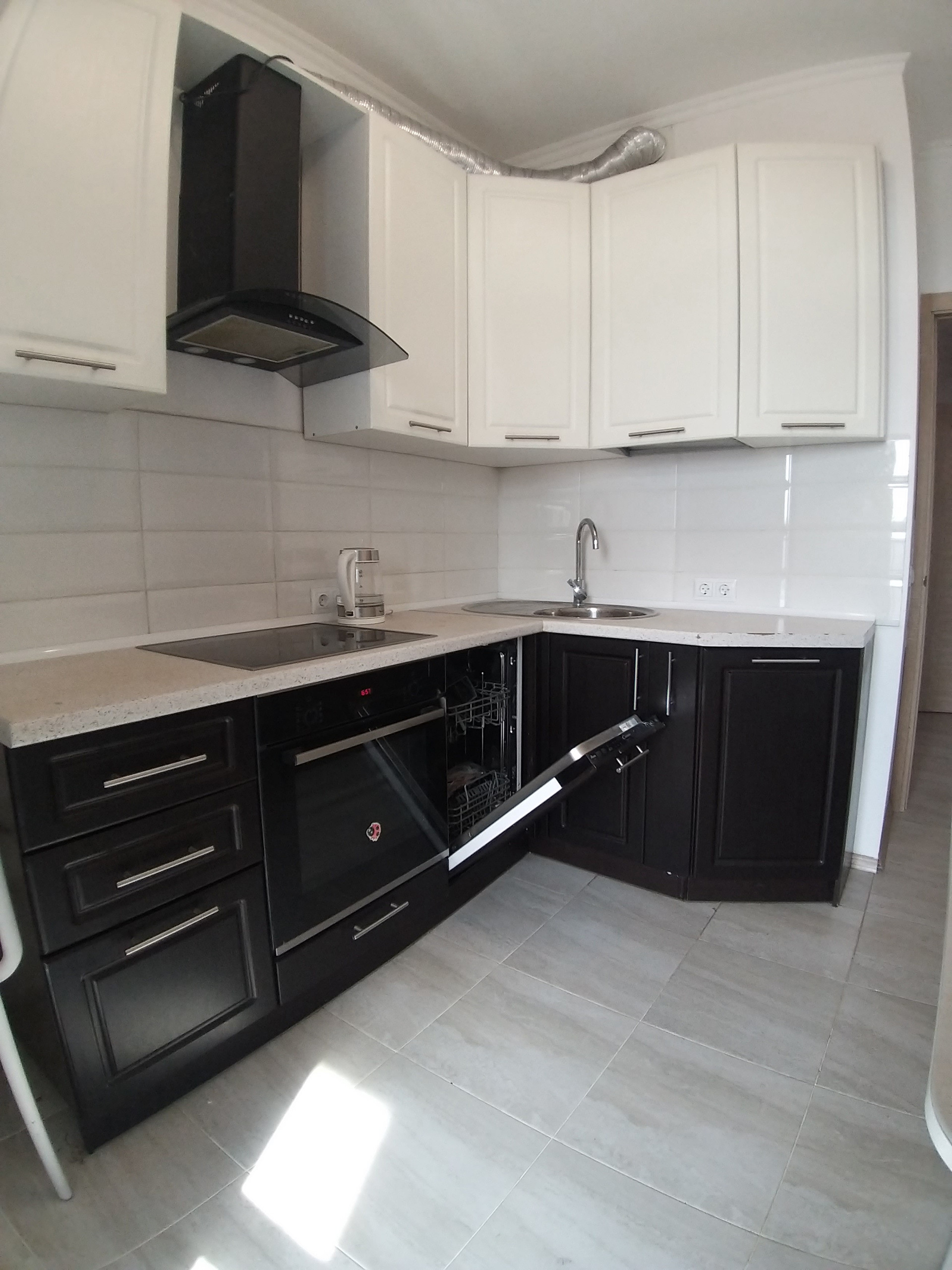 В квартире остаётся кухонный гарнитур со встроенной техникой.