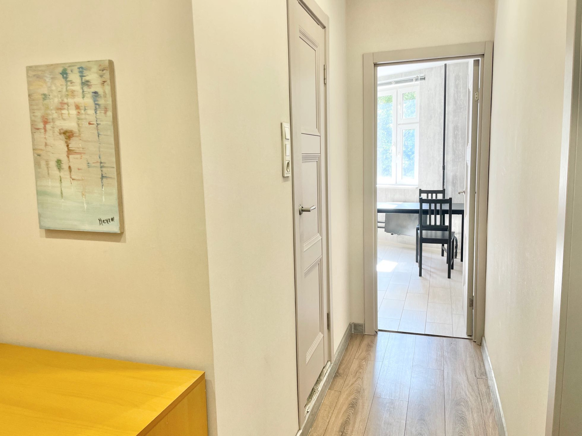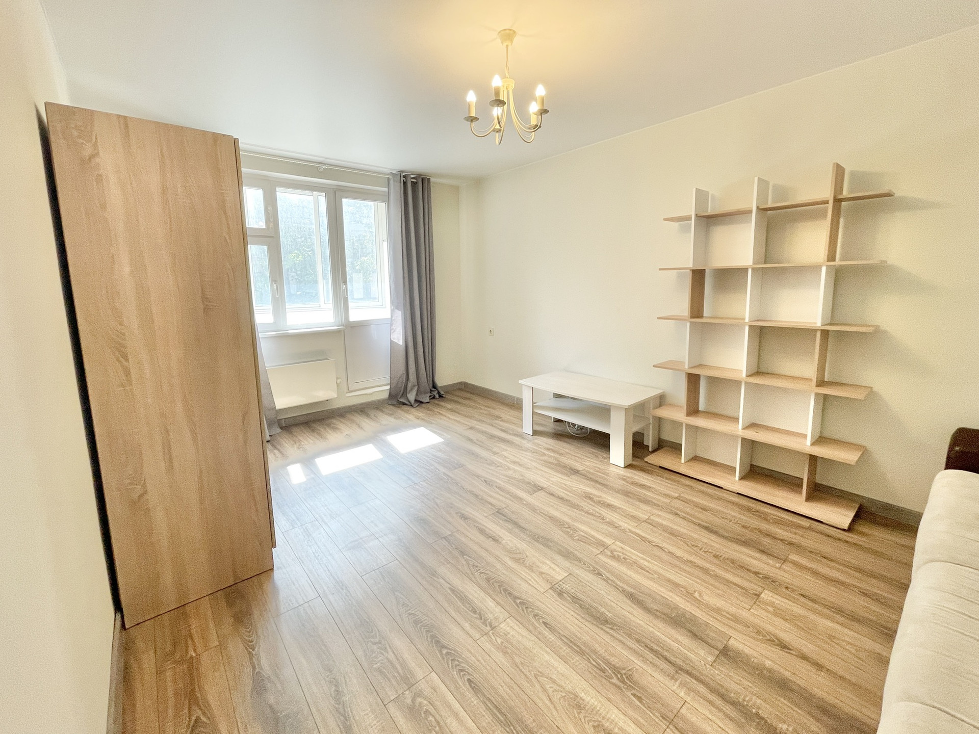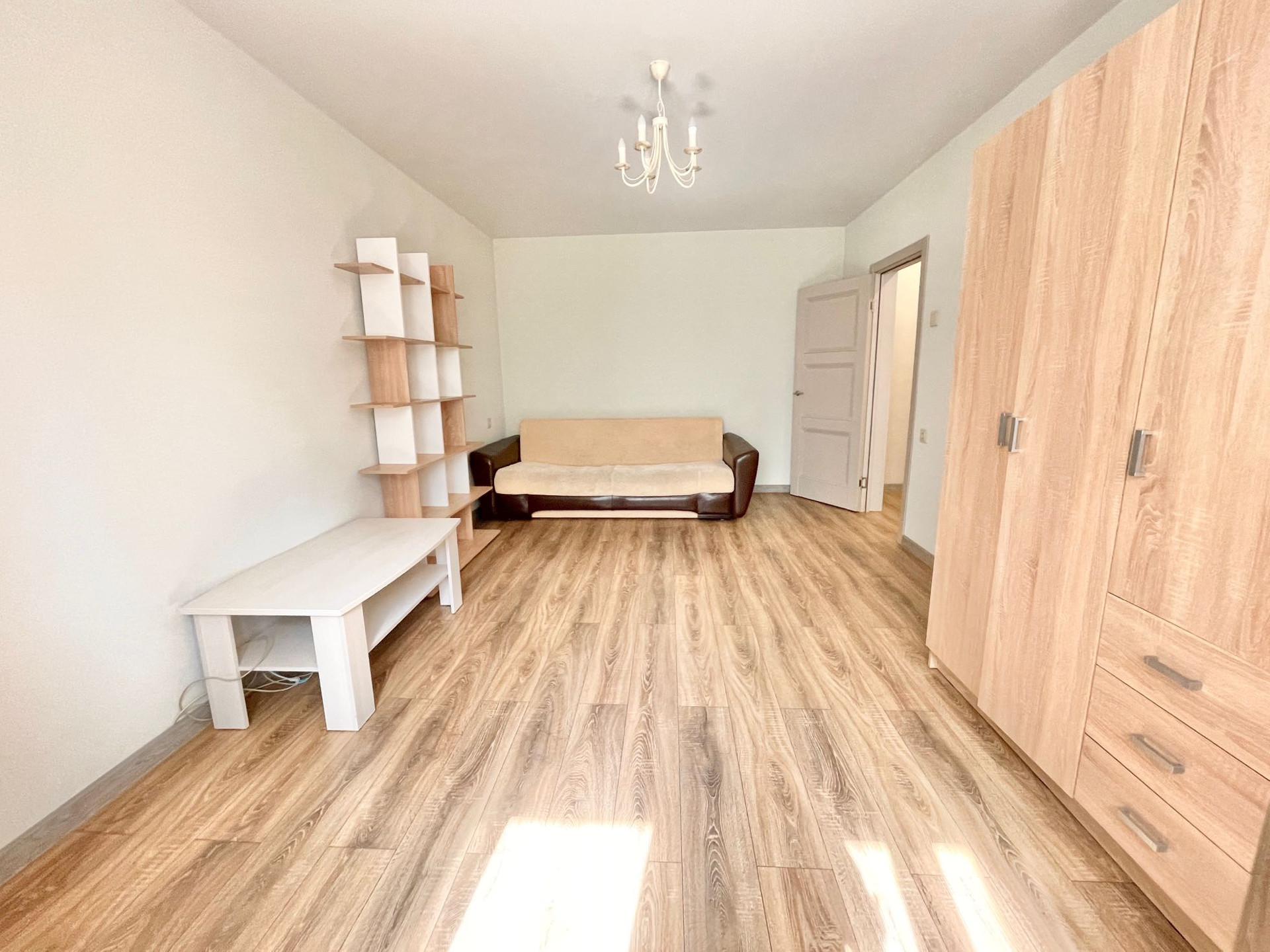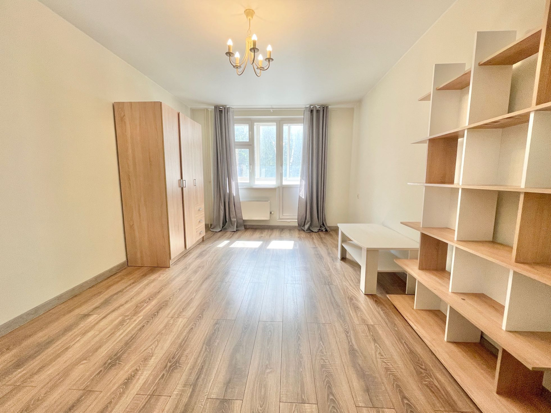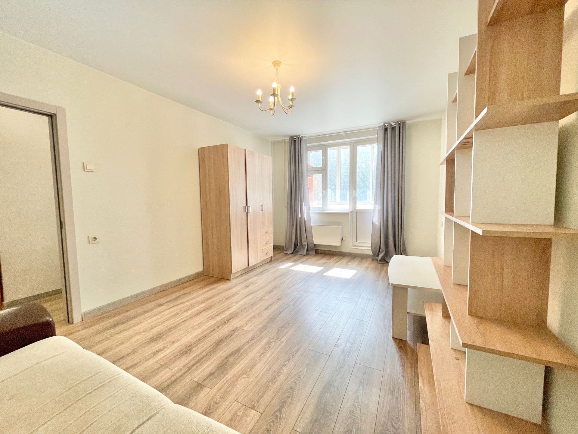 В квартире сделан косметический ремонт - заменены межкомнатные двери, установлены стеклопакеты, на стенах нейтральные обои, на полу ламинат, встроенная кухня с техникой. Мебель и техника остаются. Вариант сразу заехать и жить.