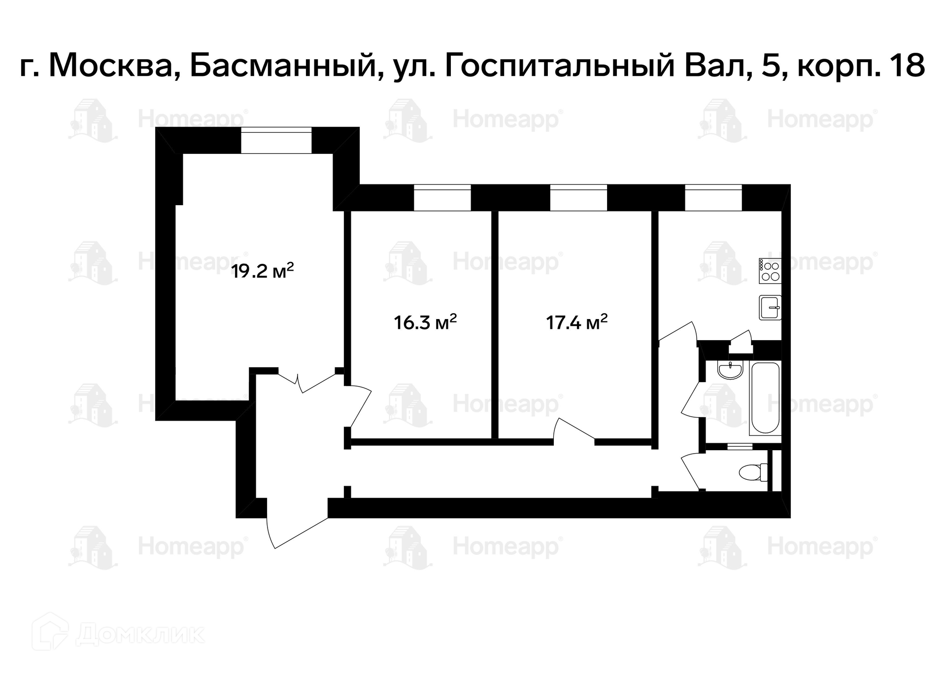 3-комнатная квартира, 82.2 м2, этаж 14 / 14, на продажу в Москве, улица Госпитальный Вал, 5к18
