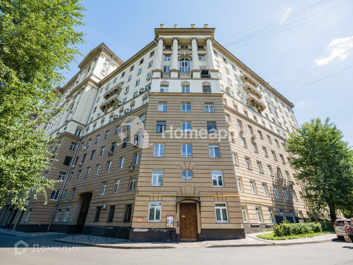 Номер лота: 73097. Продаётся отличная видовая 3-комнатная квартира площадью 53  м² на 14 этаже 14-этажного сталинского кирпичного дома, возведенного в 1955 году по индивидуальному проекту архитектора И. А. Покровского. Высота потолков 3.1 метра. Над квартирой - полноценный тех. этаж. Перекрытия железобетонные,. Два пассажирских лифта. Дом газифицирован.