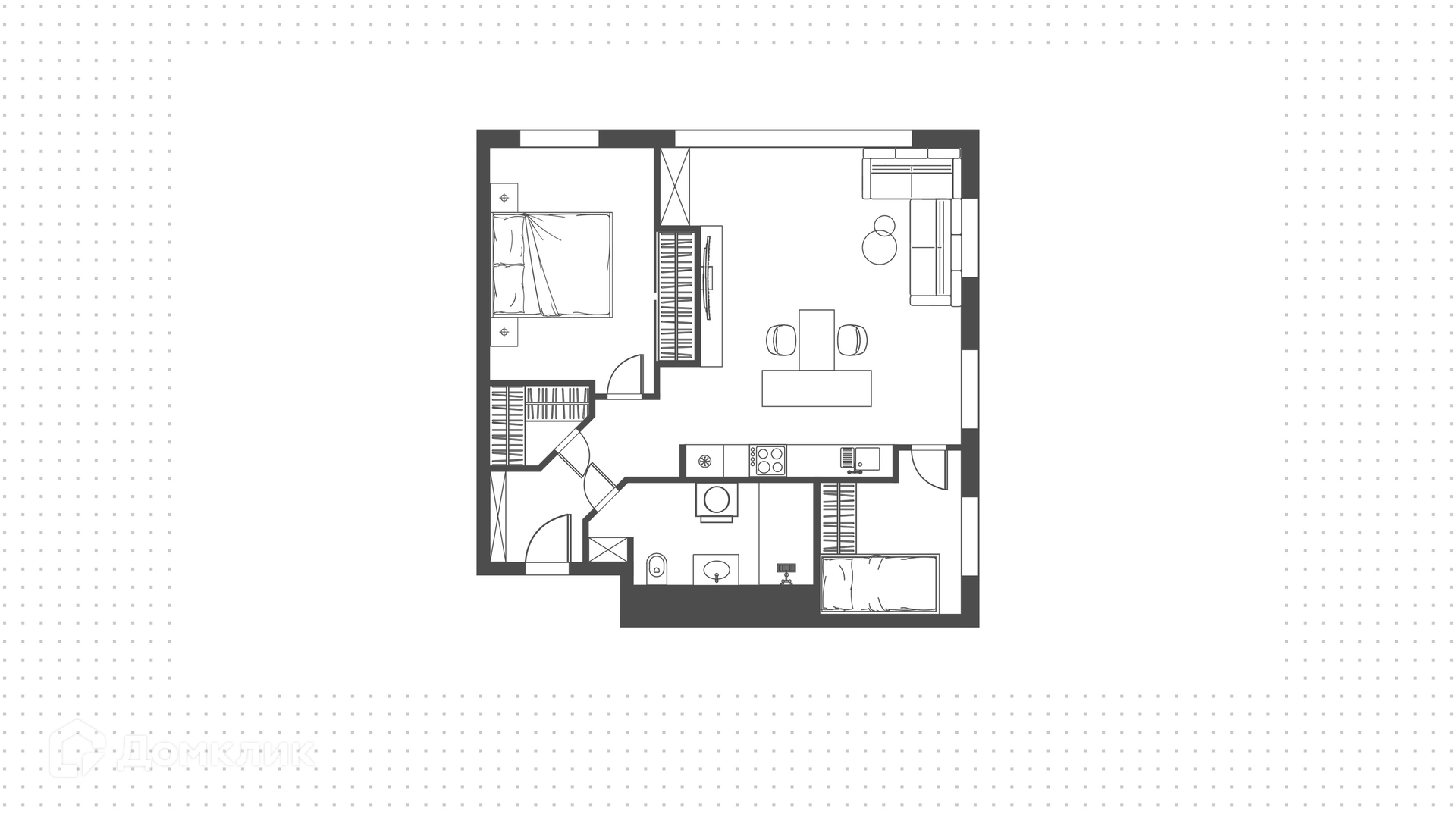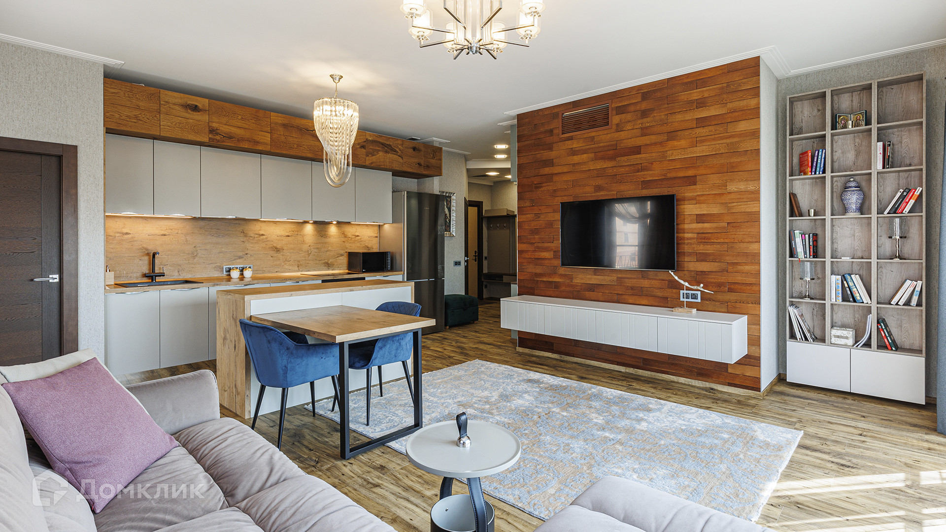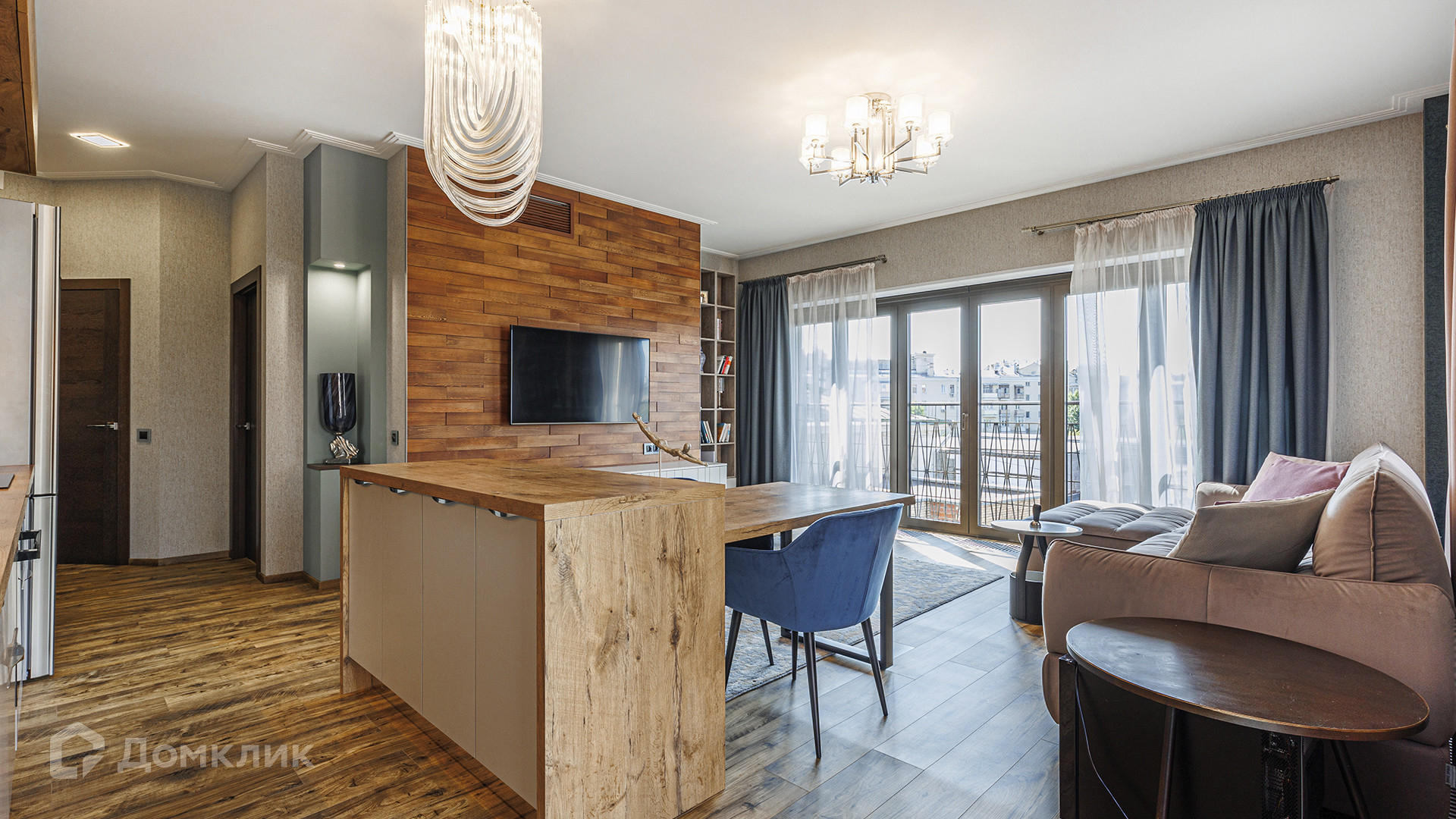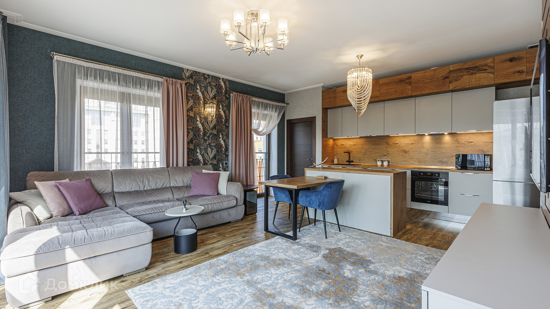 ID 216 617. Квартира с 2-мя спальнями общей площадью 69 м² в комплексе премиум-класса I'm на Садовом. Квартира с отделкой расположена на 5-м этаже, выполнен ремонт в современном стиле, интерьеры наполнены мебелью и бытовой техникой. Планировка: просторная кухня-гостиная, две спальни, гардеробная, ванная комната, прихожая. Благодаря панорамному остеклению пространство наполнено светом, открываются виды на две стороны, на реку.