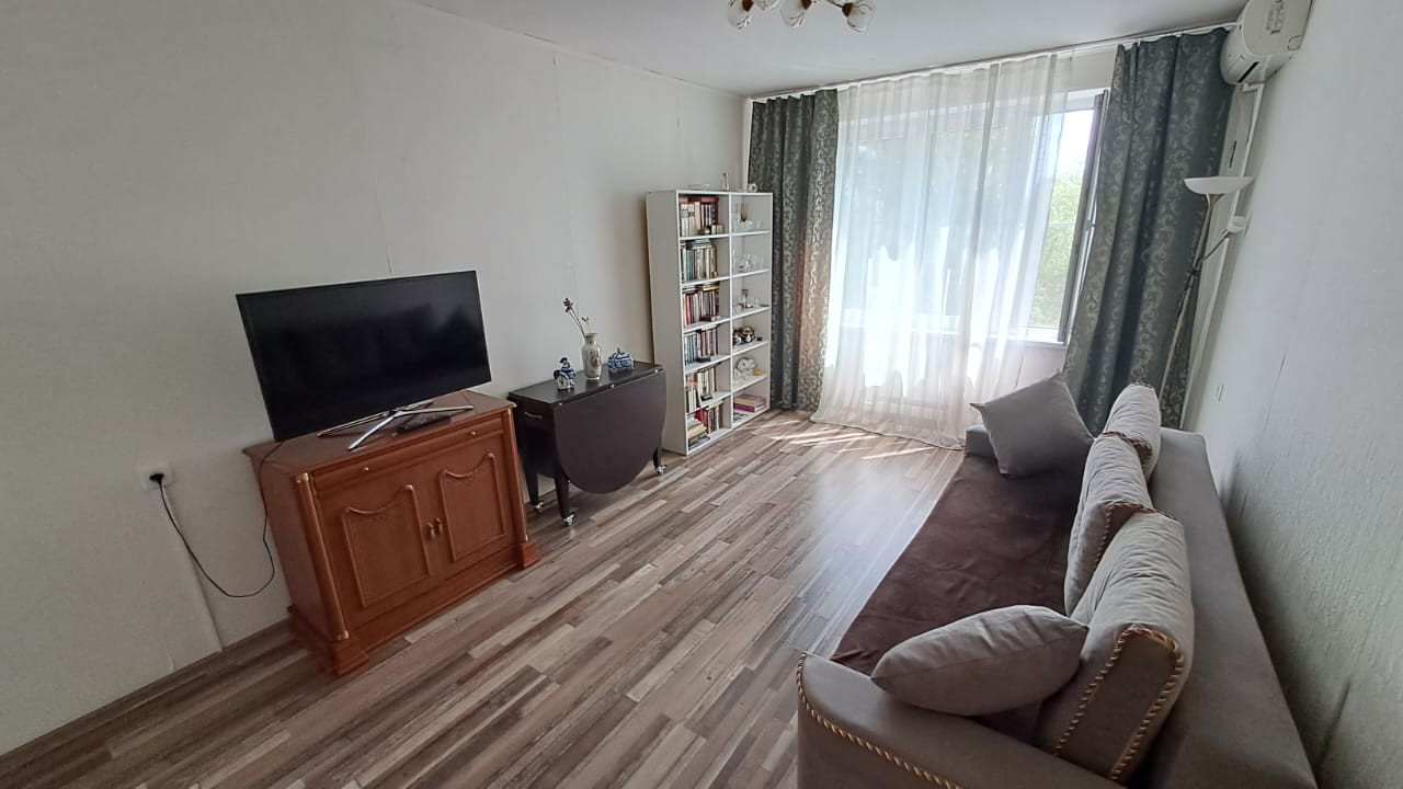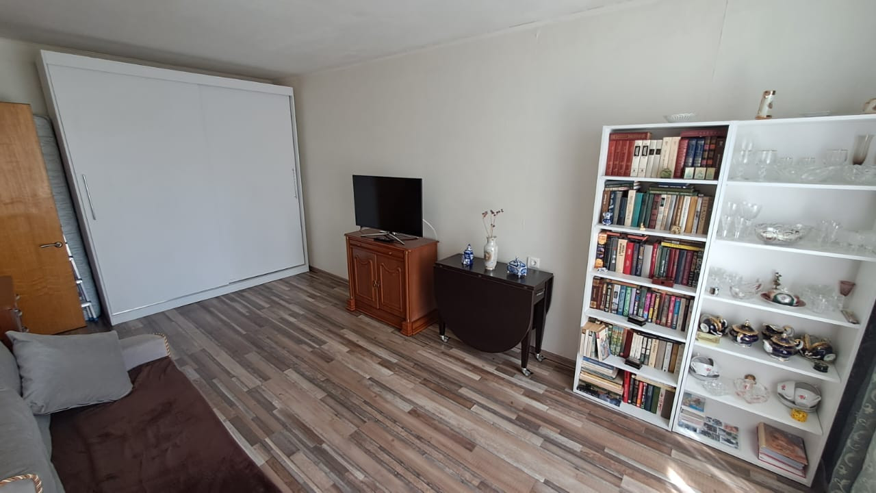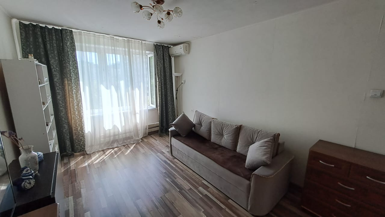 Продается светлая однокомнатная квартира недалеко от метро Речной вокзал. Развитая инфраструктура. В шаговой доступности магазин СПАР, бассейн, парк, школа в соседнем дворе. Состояние хорошее. Встроенная кухня, холодильник, стиральная машина. Диван, открытый стеллаж, гардероб. Хороший вид из окна, деревья, храм. До станции метро Беломорская и Речной вокзал можно дойти пешком за 17 минут.