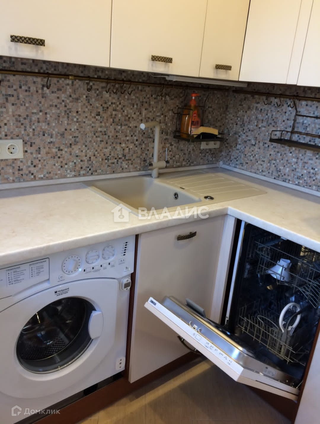 Полностью укомплектована мебелью и оборудованием: большой зеркальный шкаф - гардероб, импортная двуспальная кровать, посудомойка, стиральная машина, кондиционер, система защиты от протечек.