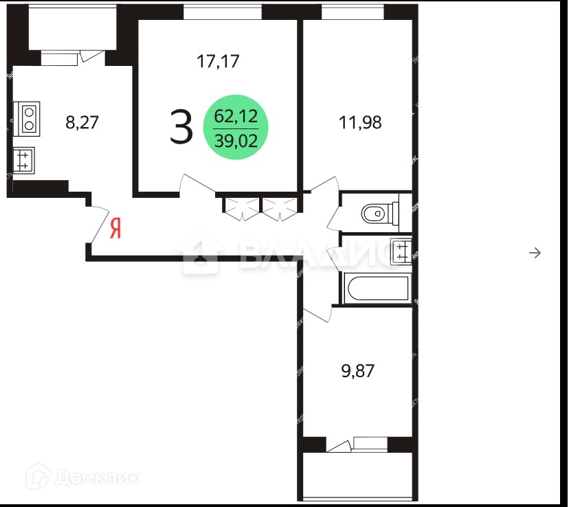 Общая площадь 62 м2