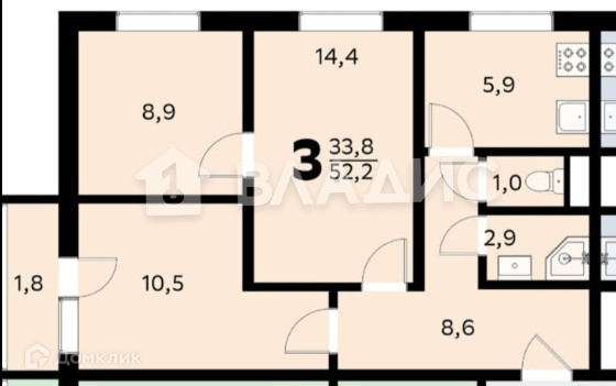 Общая площадь 52.2 м2