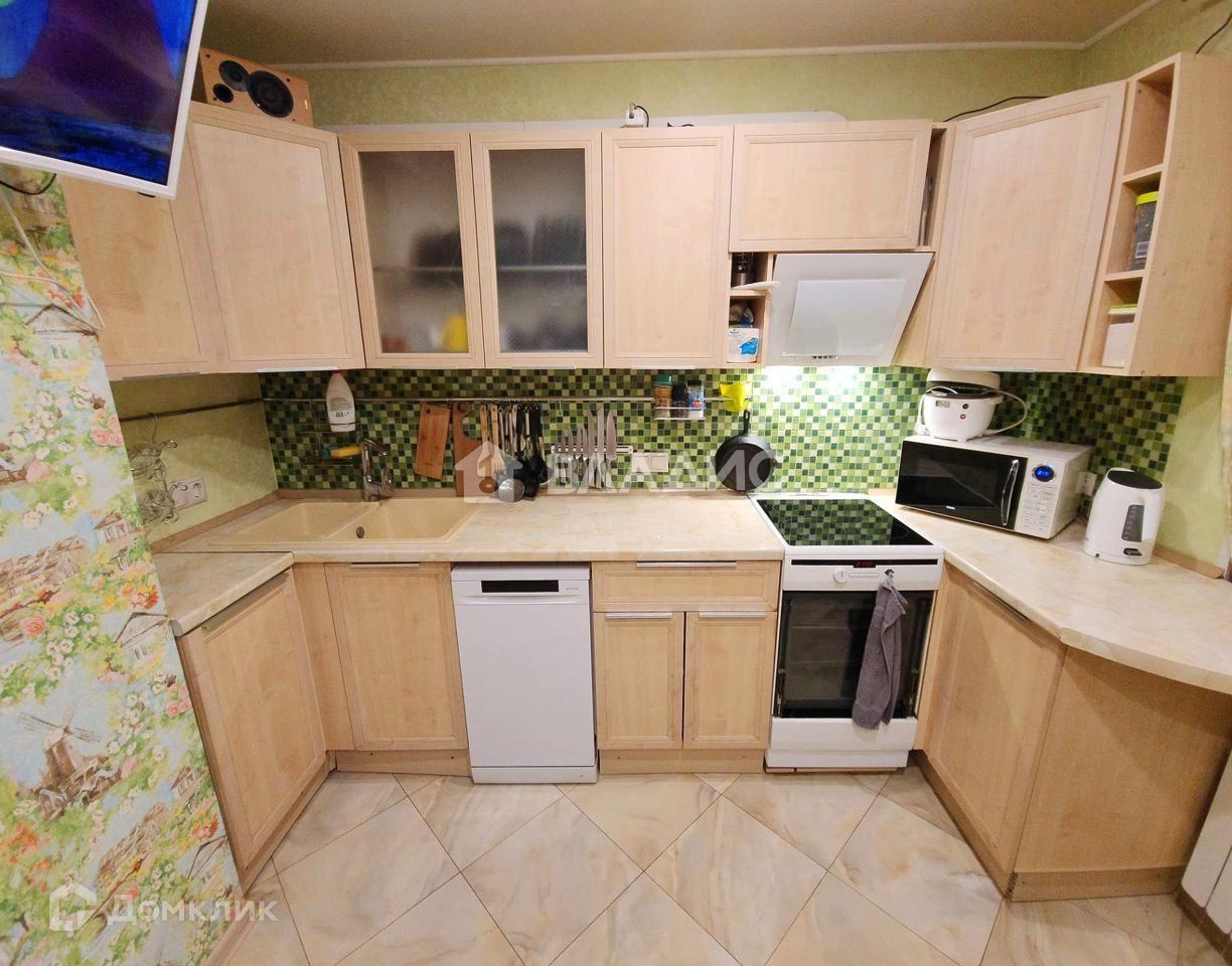 Остающаяся мебель и техника обсуждается (на торг): кухонный гарнитур, посудомоечная и стиральная машины.