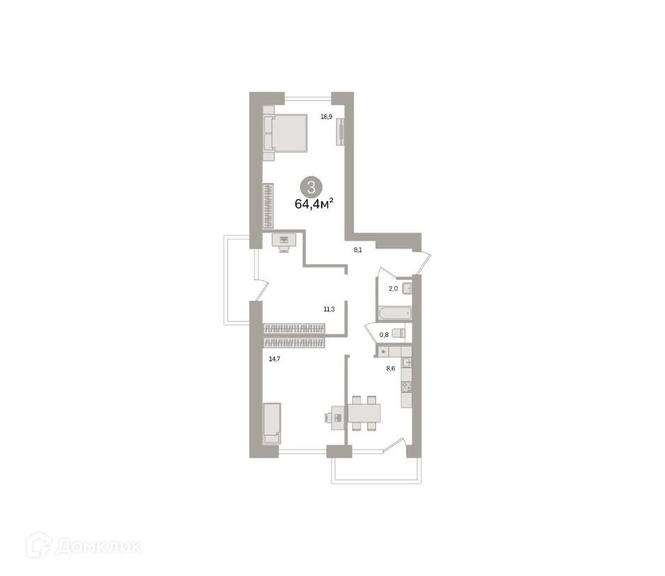 Общая площадь 64.4 м2