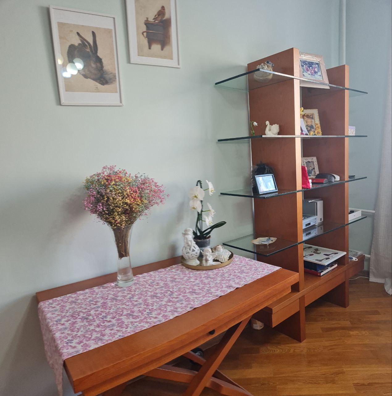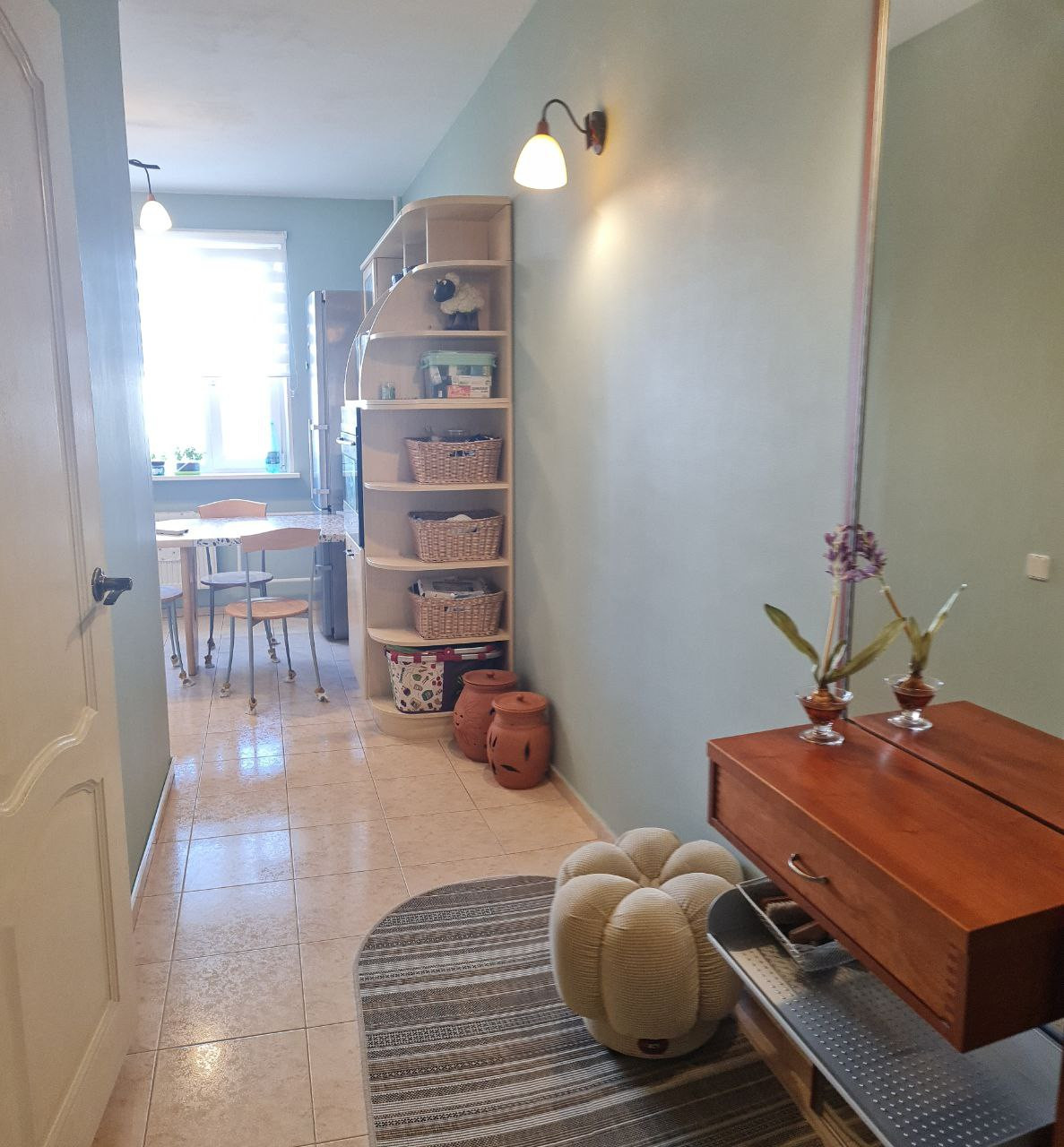 Пол: натуральный дубовый паркет, Плитка на кухне и в ванной (тёпл. пол).