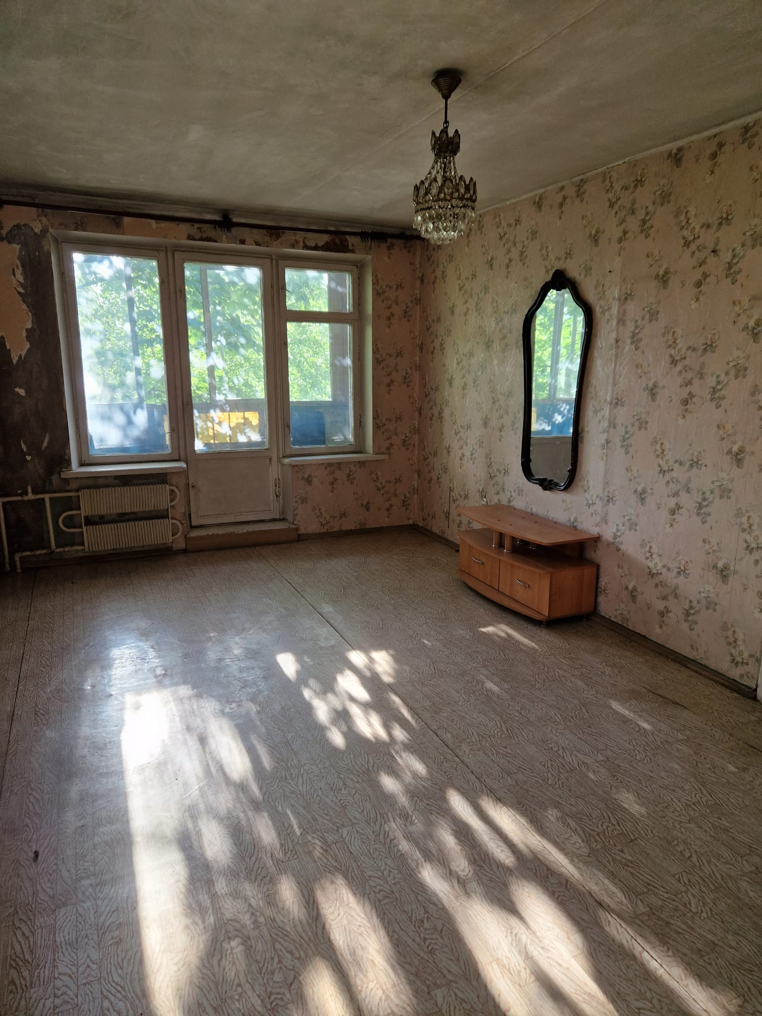 Дом под реновацию. Свободная продажа, . Перепланировок нет. Окна выходят в зеленый  двор, тихо, квартира требует ремонта. Наследство более 5 лет, два взрослых собственника. Развитая инфраструктура.  Дом утопает в зелени.