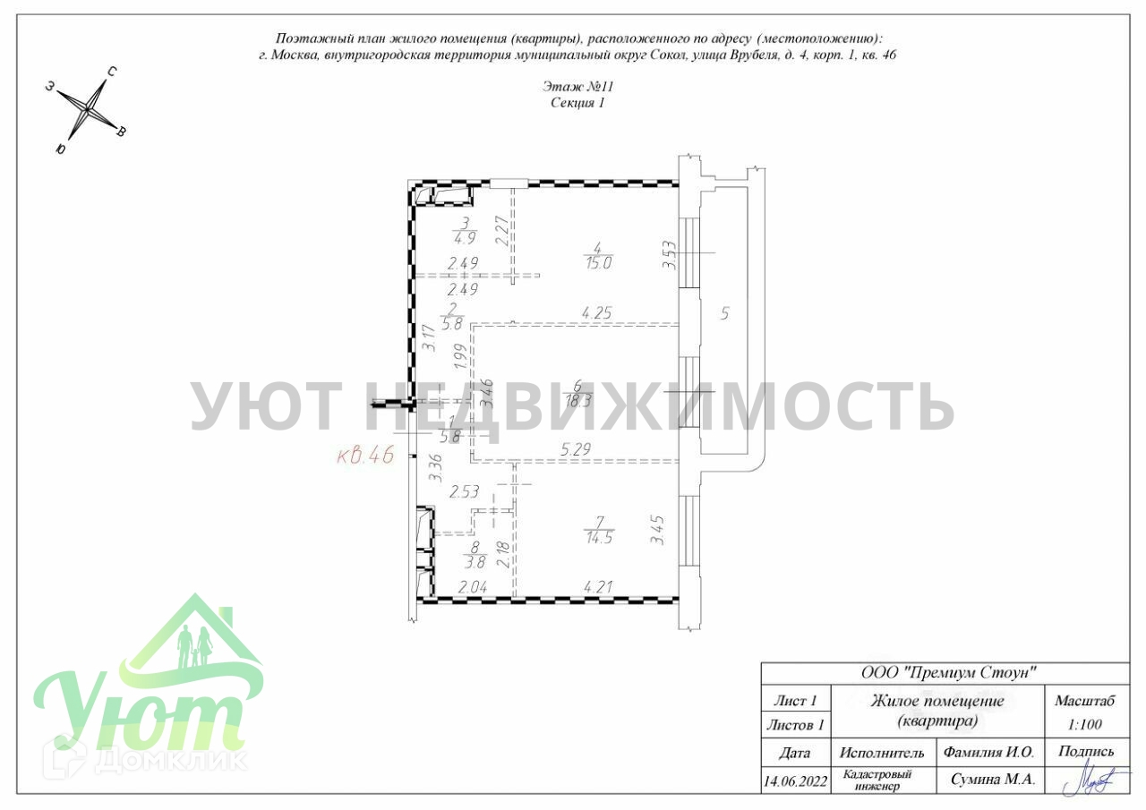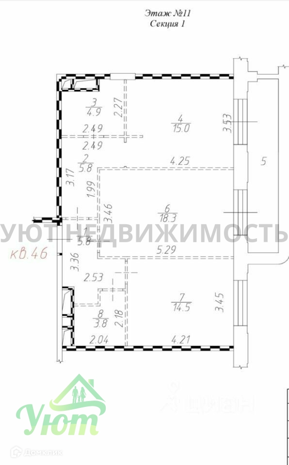 Квартира располагается в Секция 1 этаж 11.