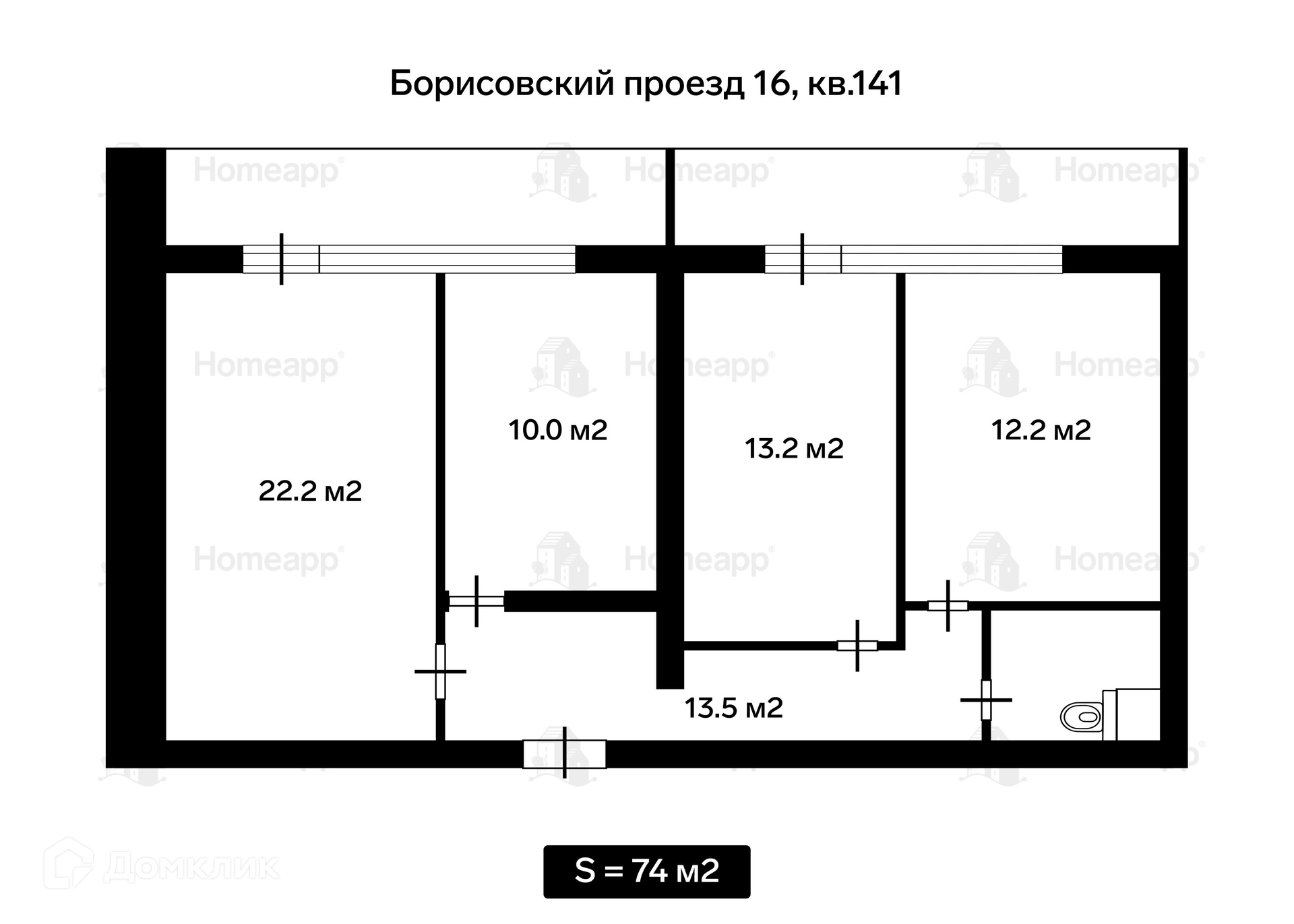 3-комнатная квартира, 80.8 м2, этаж 12 / 22, на продажу в Москве, Борисовский проезд, 16