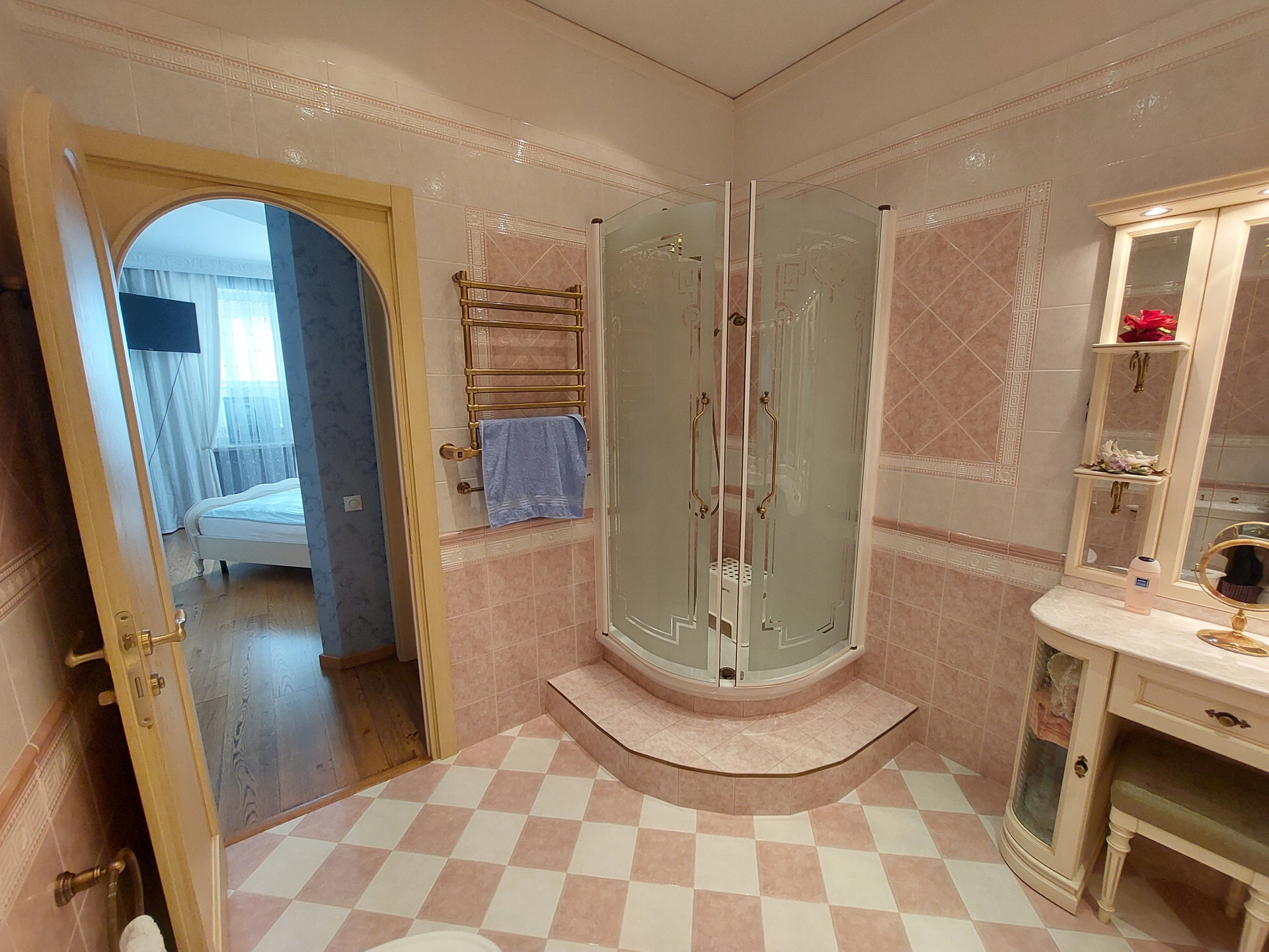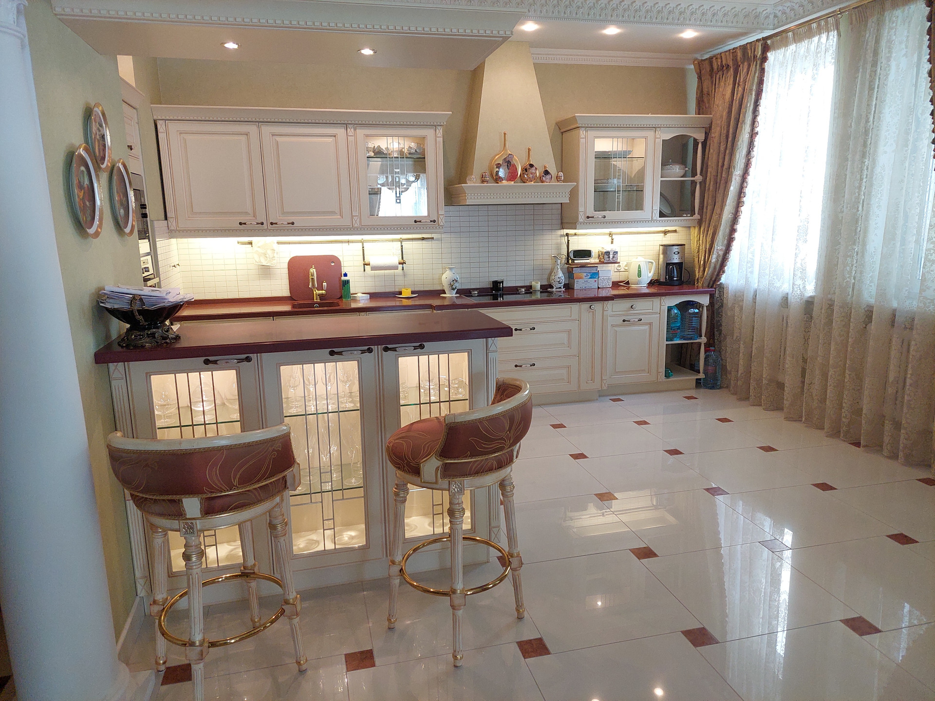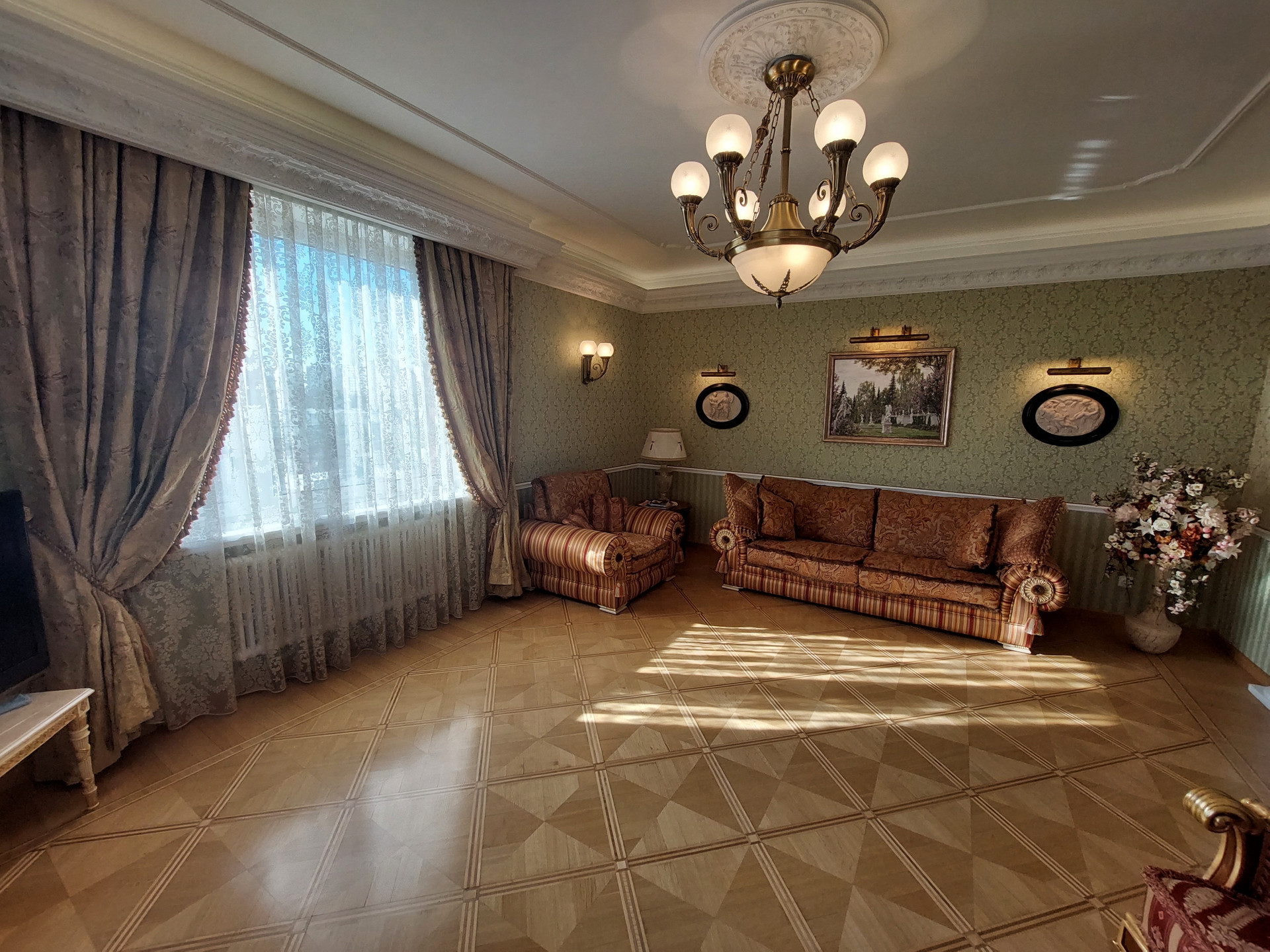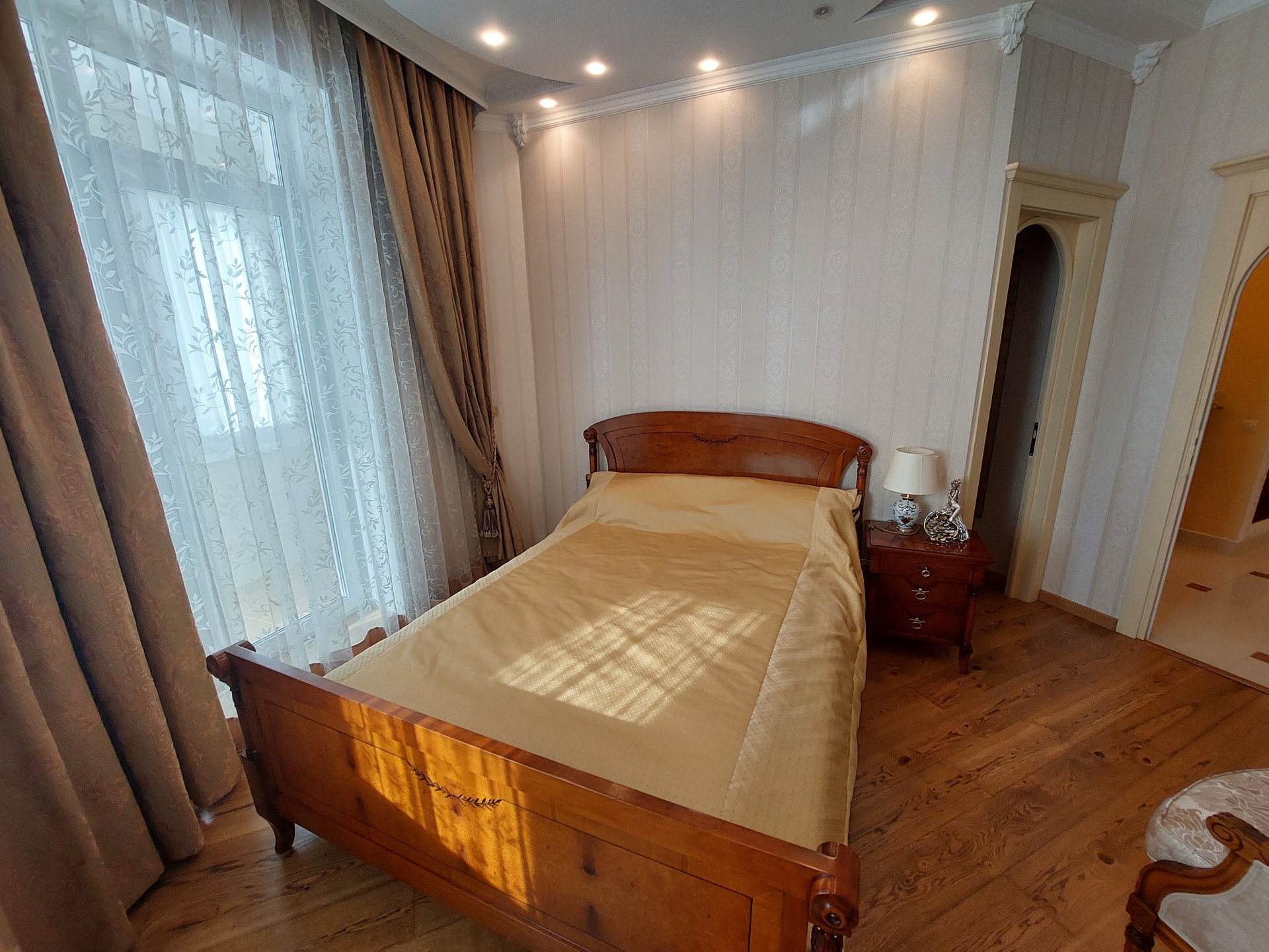Дизайнерский проект из качественных материалов (гранит, оникс, тик, испанская плитка, итальянская сантехника, лепнина и колонны из гипса, межкомнатные двери из массива дерева, итальянский паркет - массив дуба, мрамор).