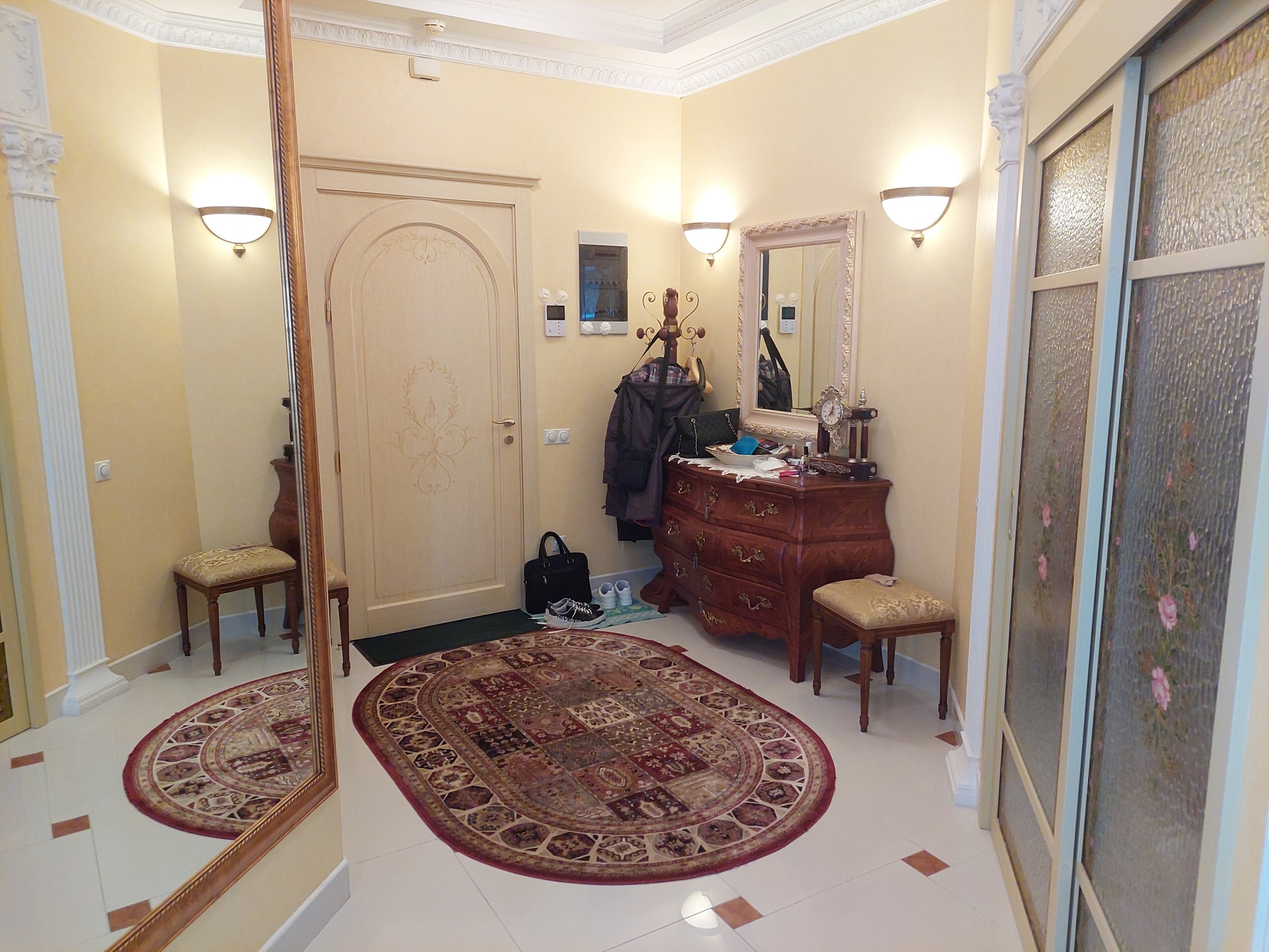 Интернет, телефон, видеодомофон, двойная входная дверь. Окна в зеленый тихий двор, двойные рамы стеклопакетов. Очень светлая и солнечная квартира. На этаже сделан ремонт, торжественная входная группа.