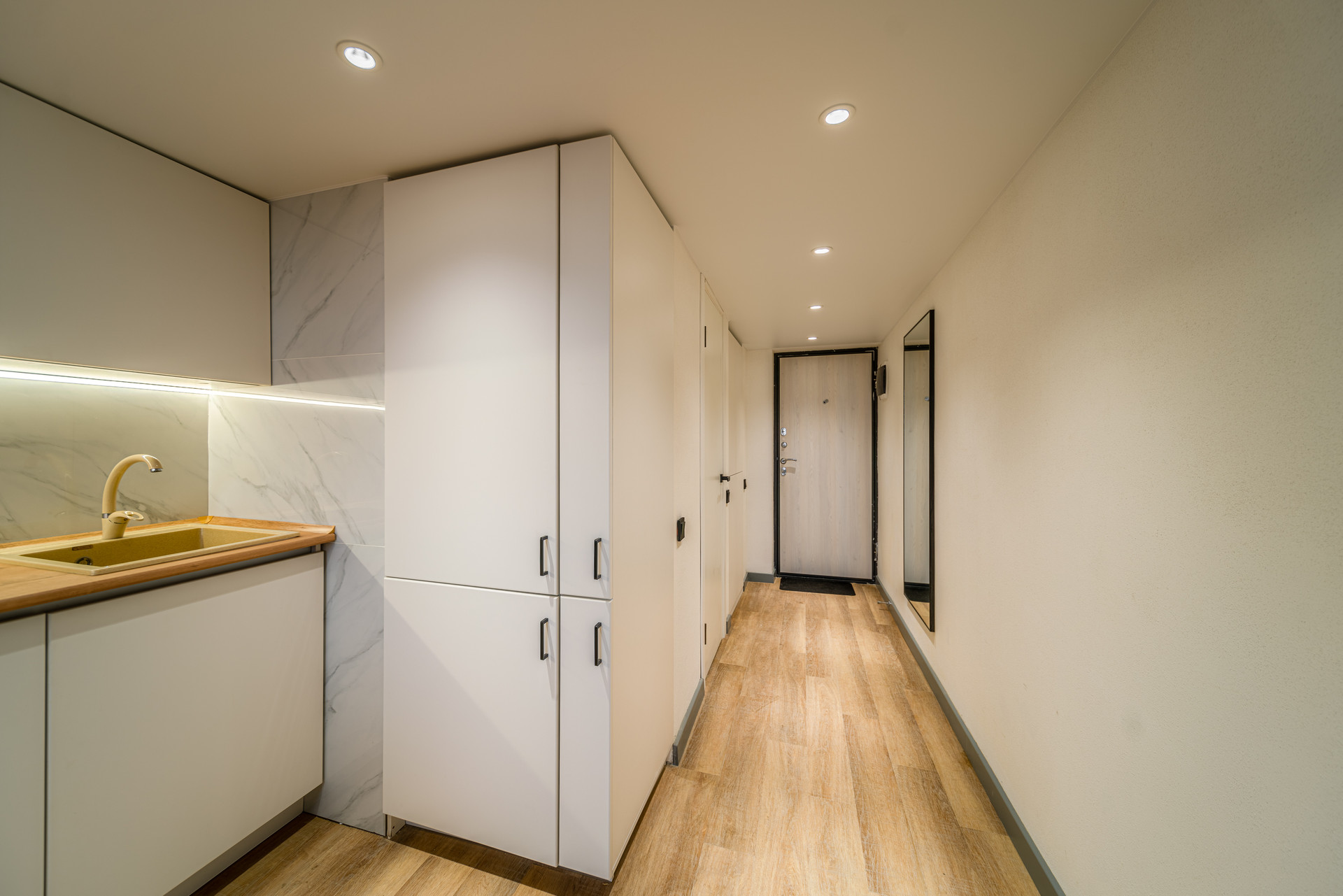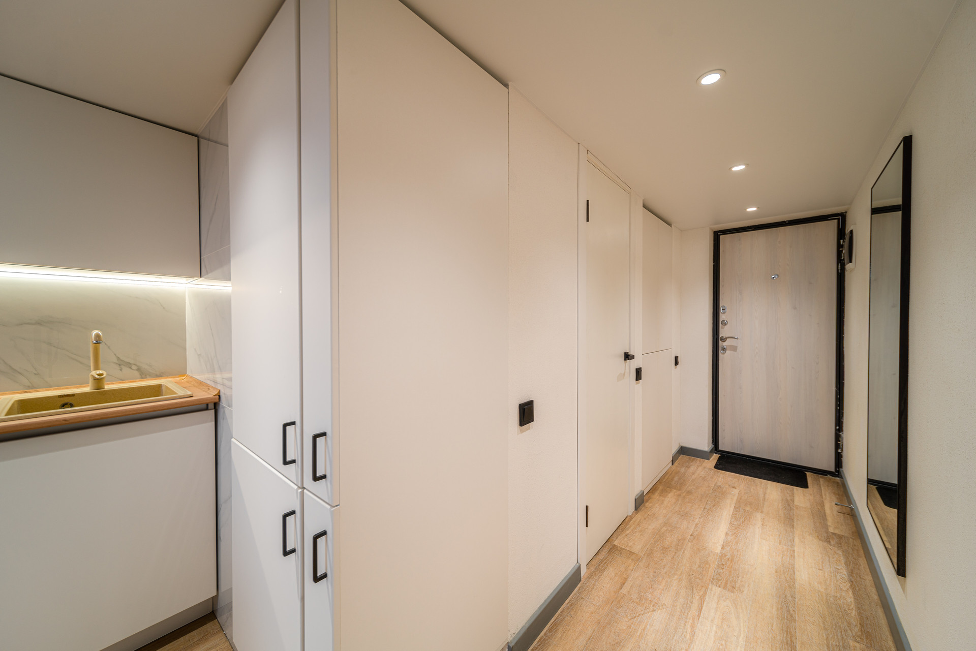 - стильная и удобная входная группа, включает в себя встроенный шкаф для вещей при входе