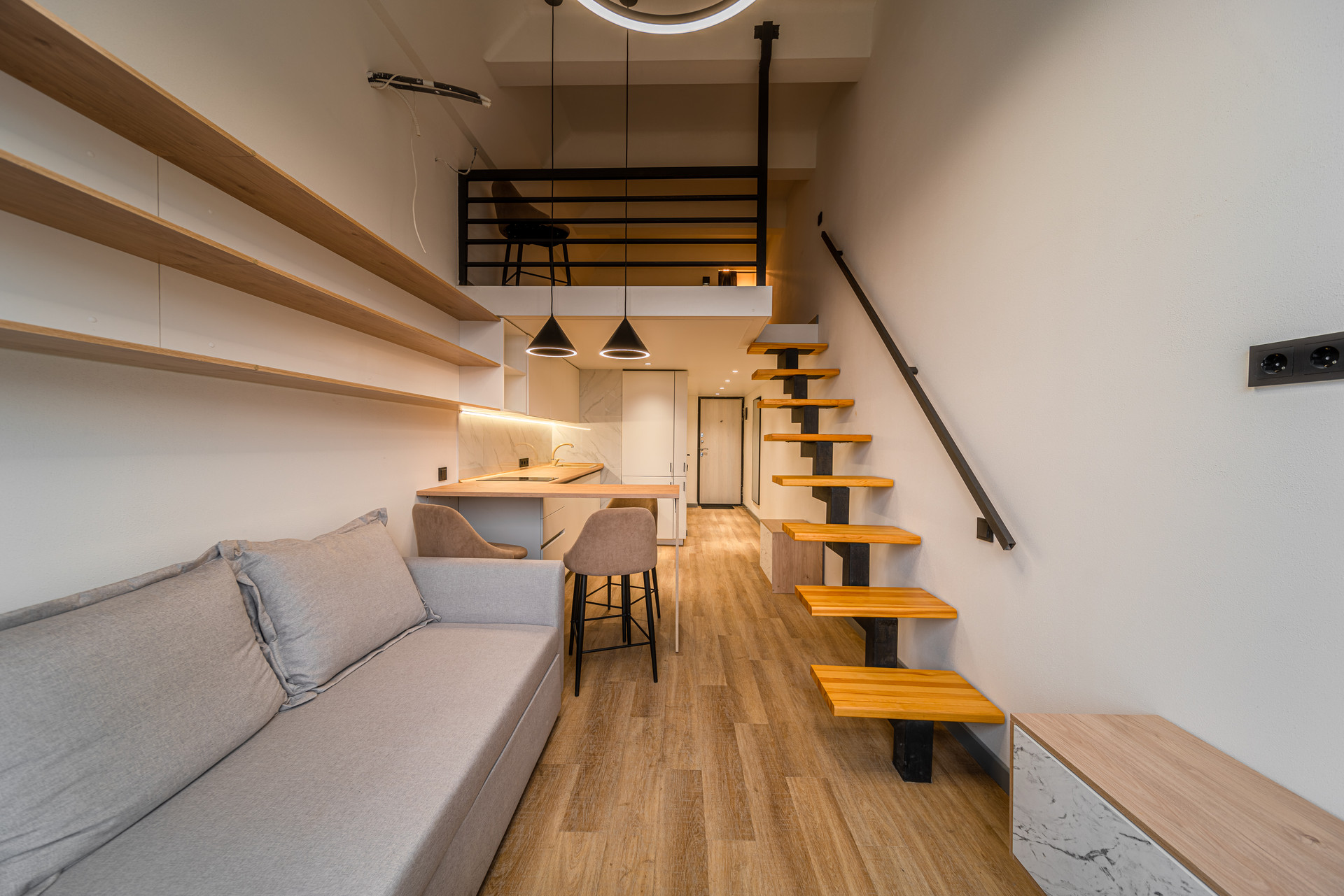 Продаётся ЭКСТРАОРДИНАРНАЯ ДВУХУРОВНЕВАЯ СТУДИЯ с ДИЗАЙНЕРСКИМ РЕМОНТОМ в ЖК Апарт-комплекс 16 Уровень