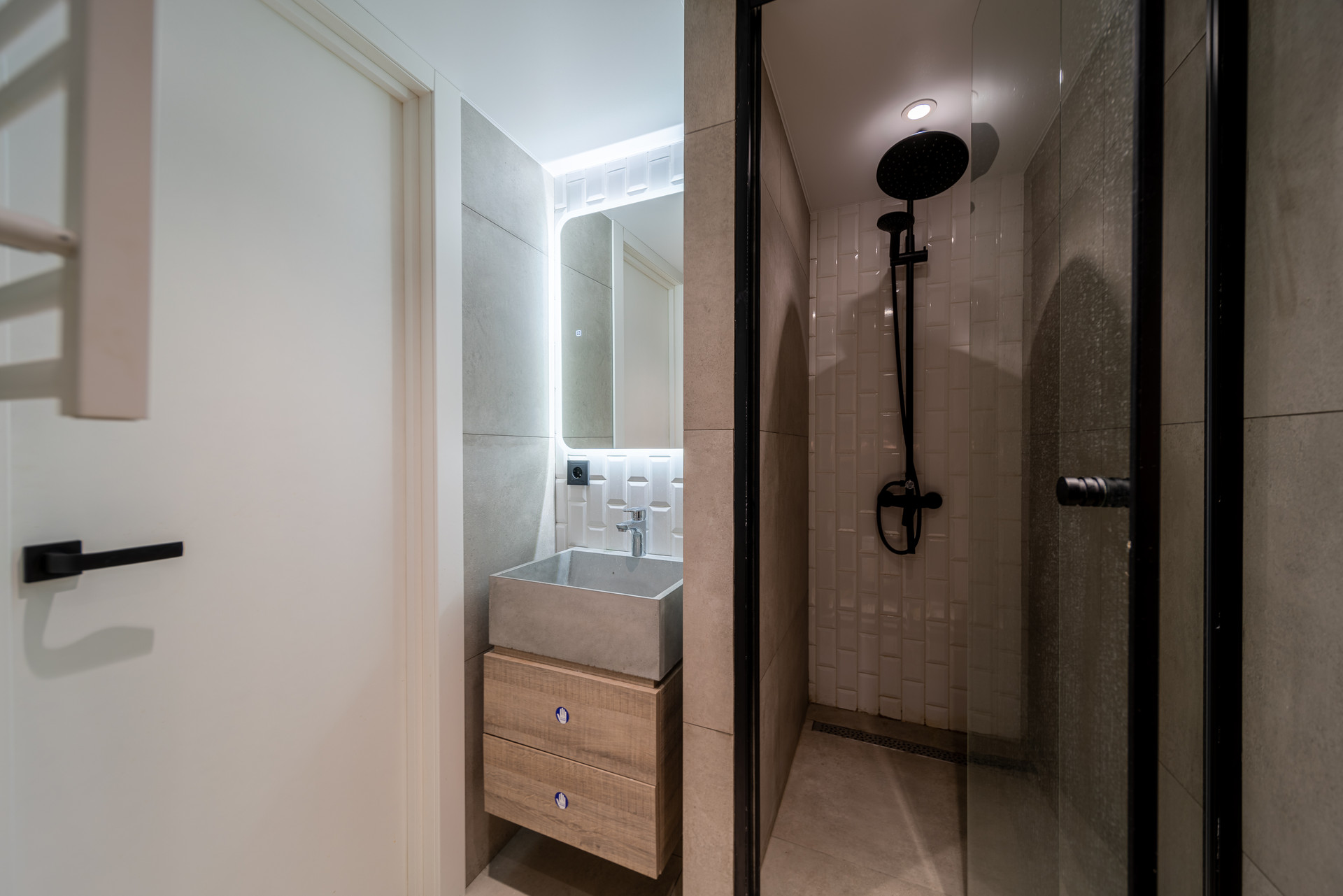 - санузел с теплыми полами, электрическим полотенцесушителем, биде и стильной душевой кабиной.
