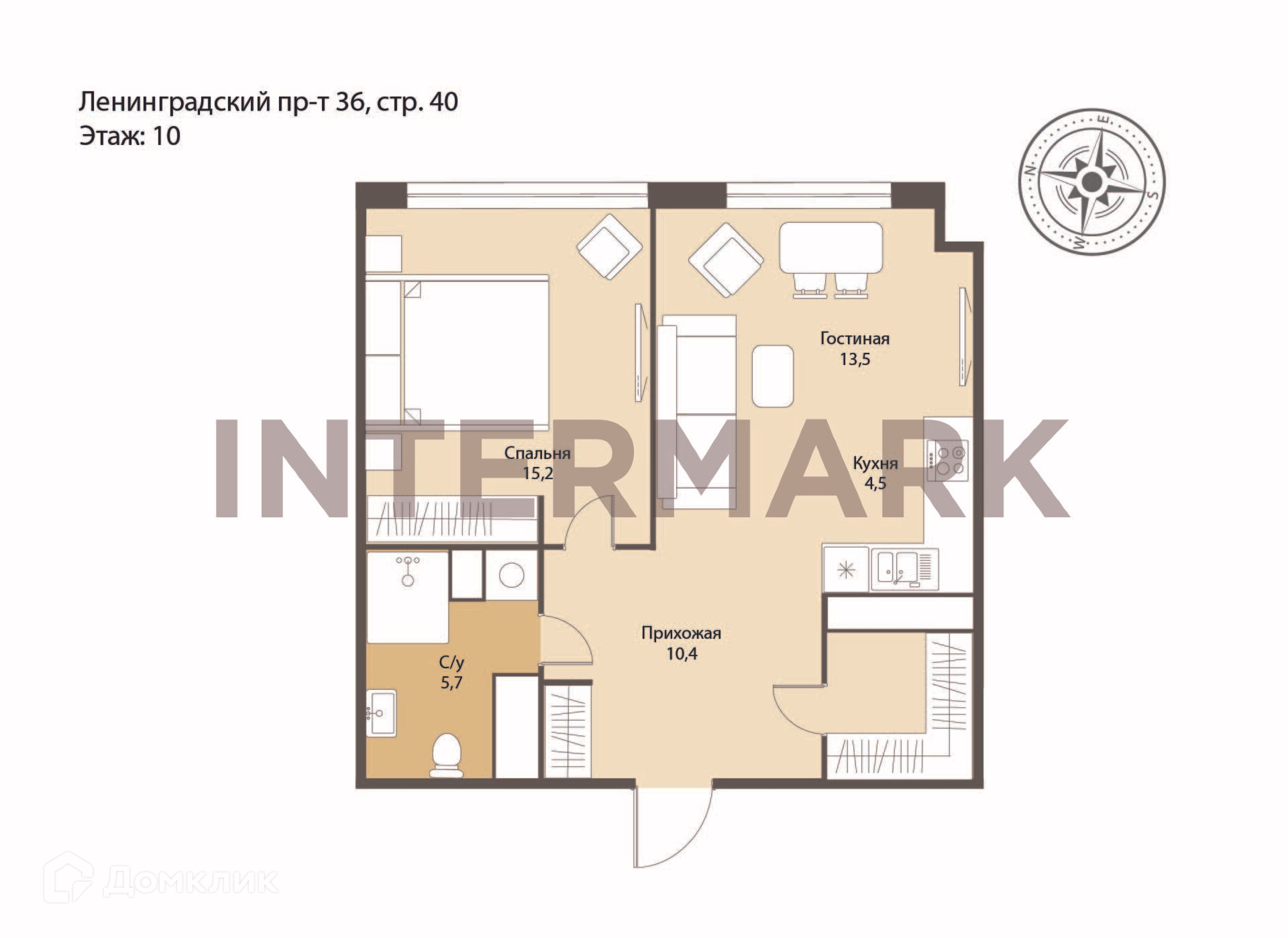2-комнатная квартира, 53 м2, этаж 10 / 25, на продажу в Москве, Ленинградский проспект, 36с40