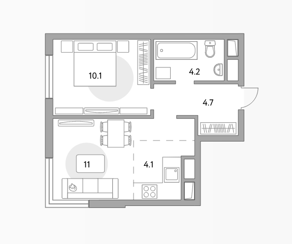 Общая площадь 34.5 м2