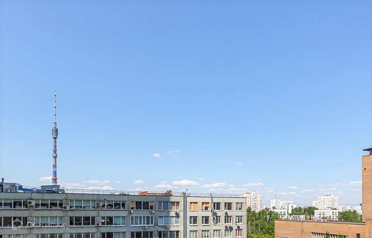 Два окна выходит в тихий двор и два окна на улицу, видна Останкинская башня.