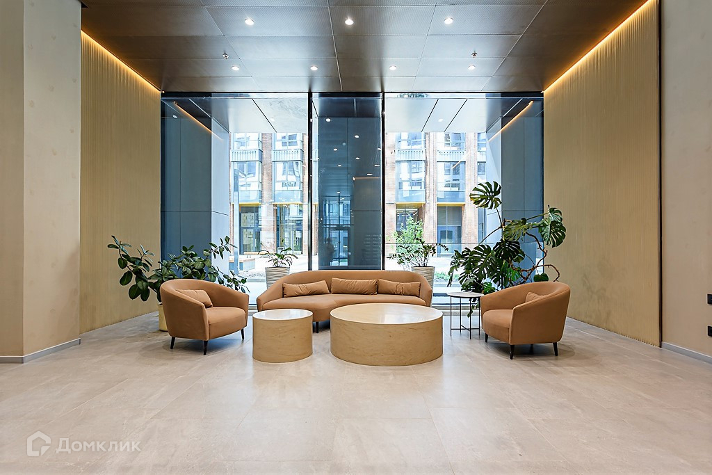 Высокие потолки и панорамные окна увеличивают пространство.