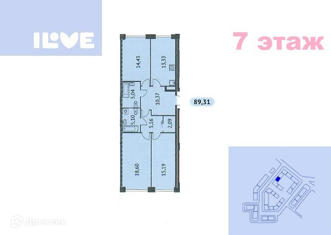Арт. 47507904 В НОВОМ ЖК «ILOVE» продается  3 комнатная квартира,в СДАННОМ корпусе на 7-м этаже.
