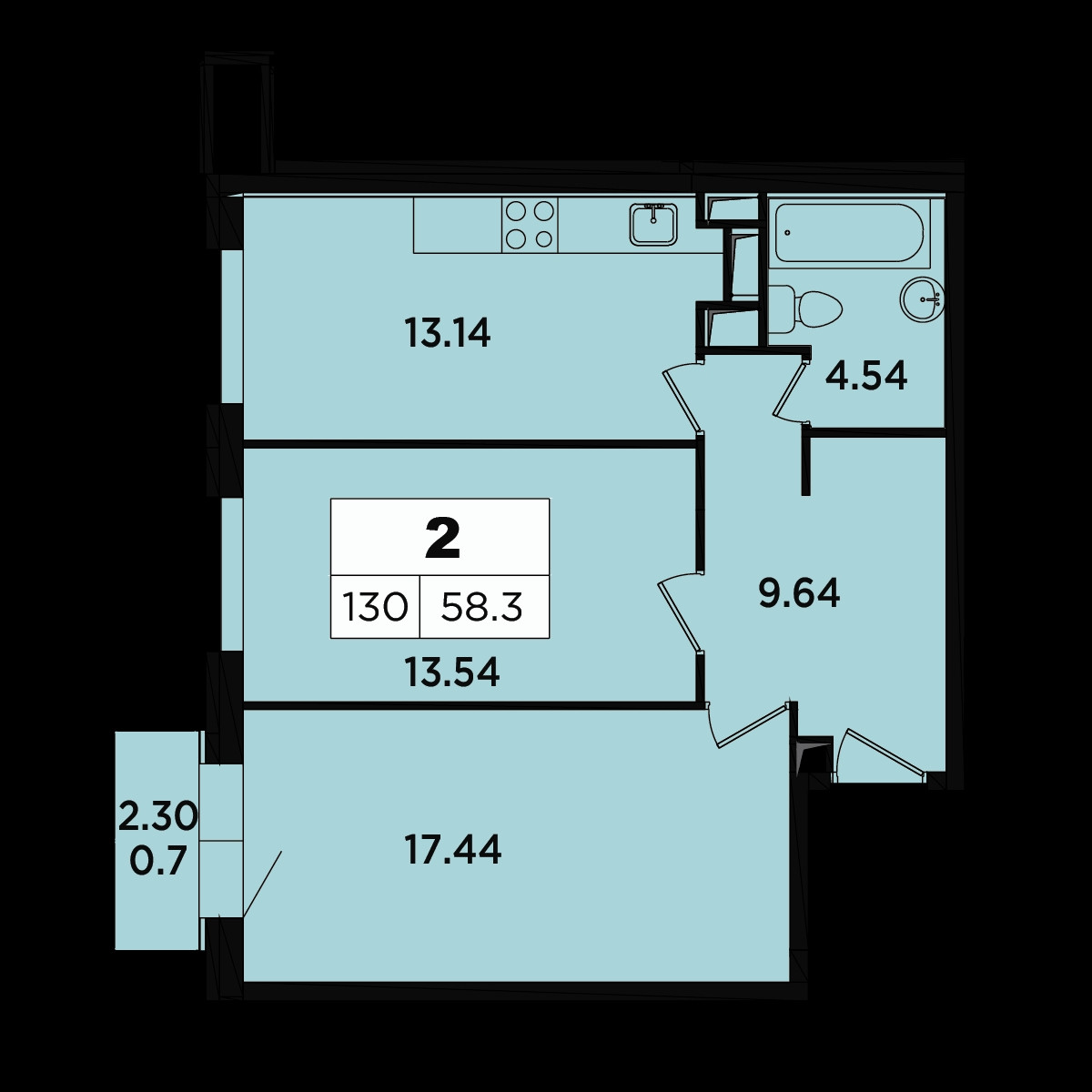 Общая площадь 59.7 м2