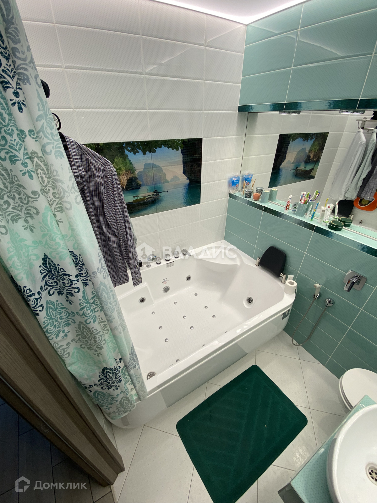 В обоих с/у установлены аква стопы с опцией дистанционного управления. В большом с/у размещено двухместное джакузи с гидро-аэро массажем и озонированием. Вся сантехника немецких брендов.