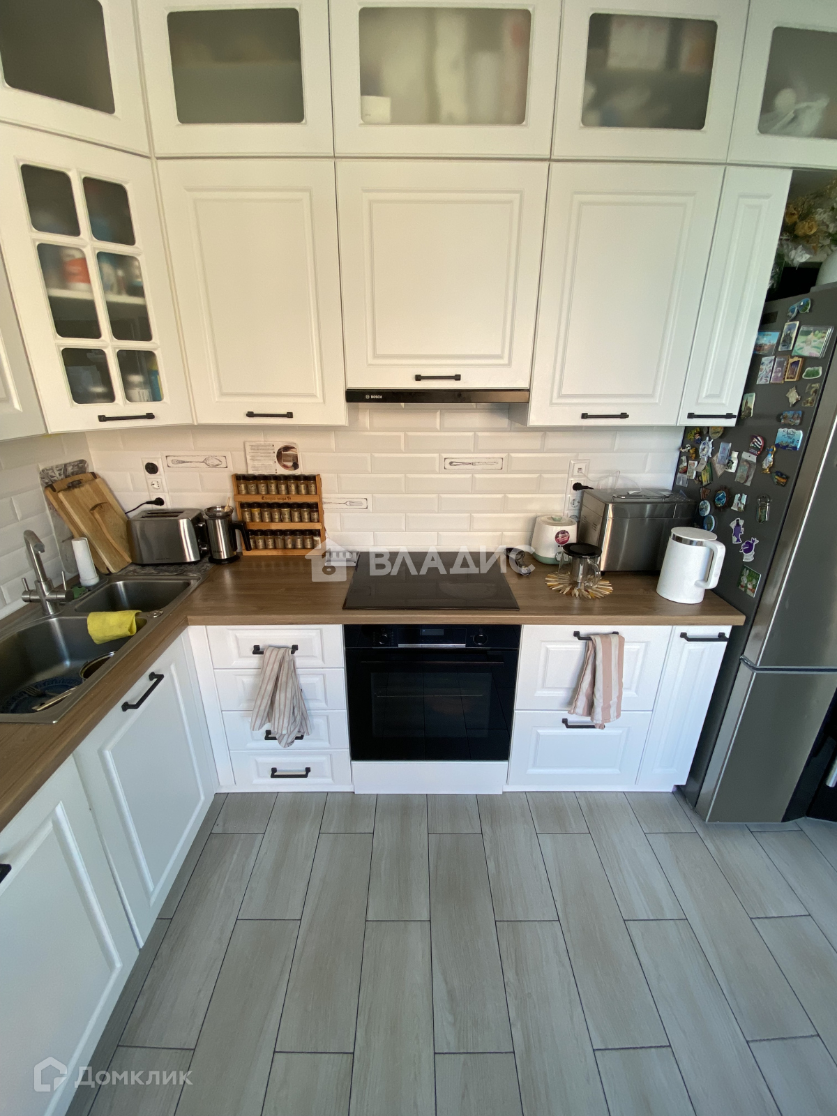 Квартира с качественным ремонтом и современной техникой. Кухня оборудована side by side холодильником, варочной панелью, духовкой, посудомоечной машиной на 13 персон, свч, измельчителем бытовых отходов.
