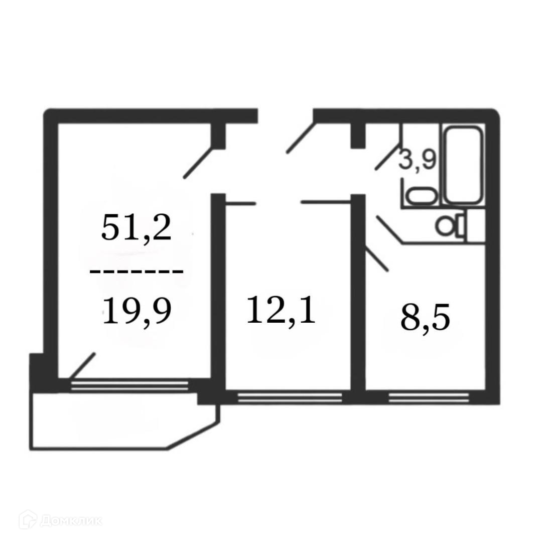 Общая площадь 51.2 м2
