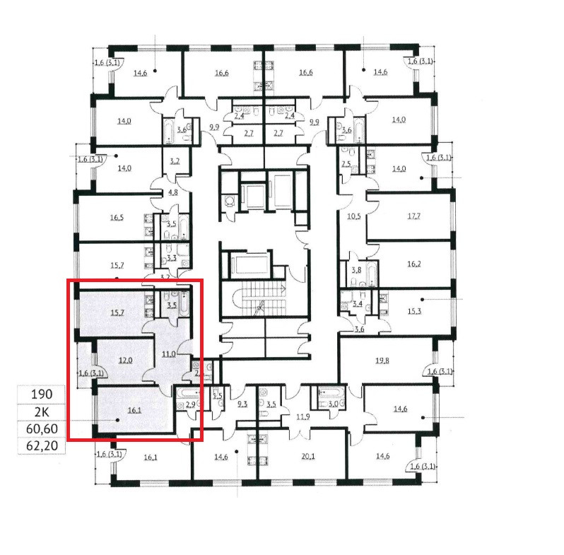 Общая площадь 62.2 м2