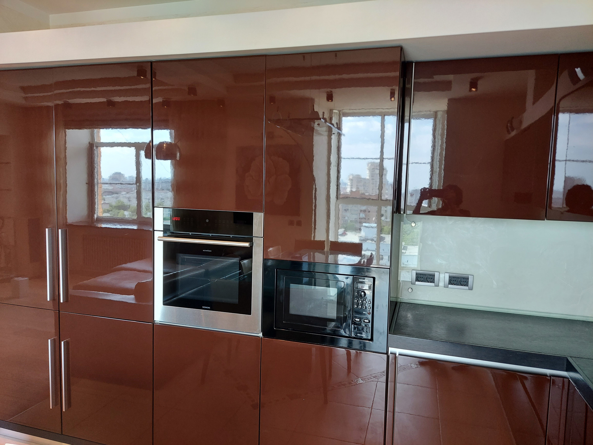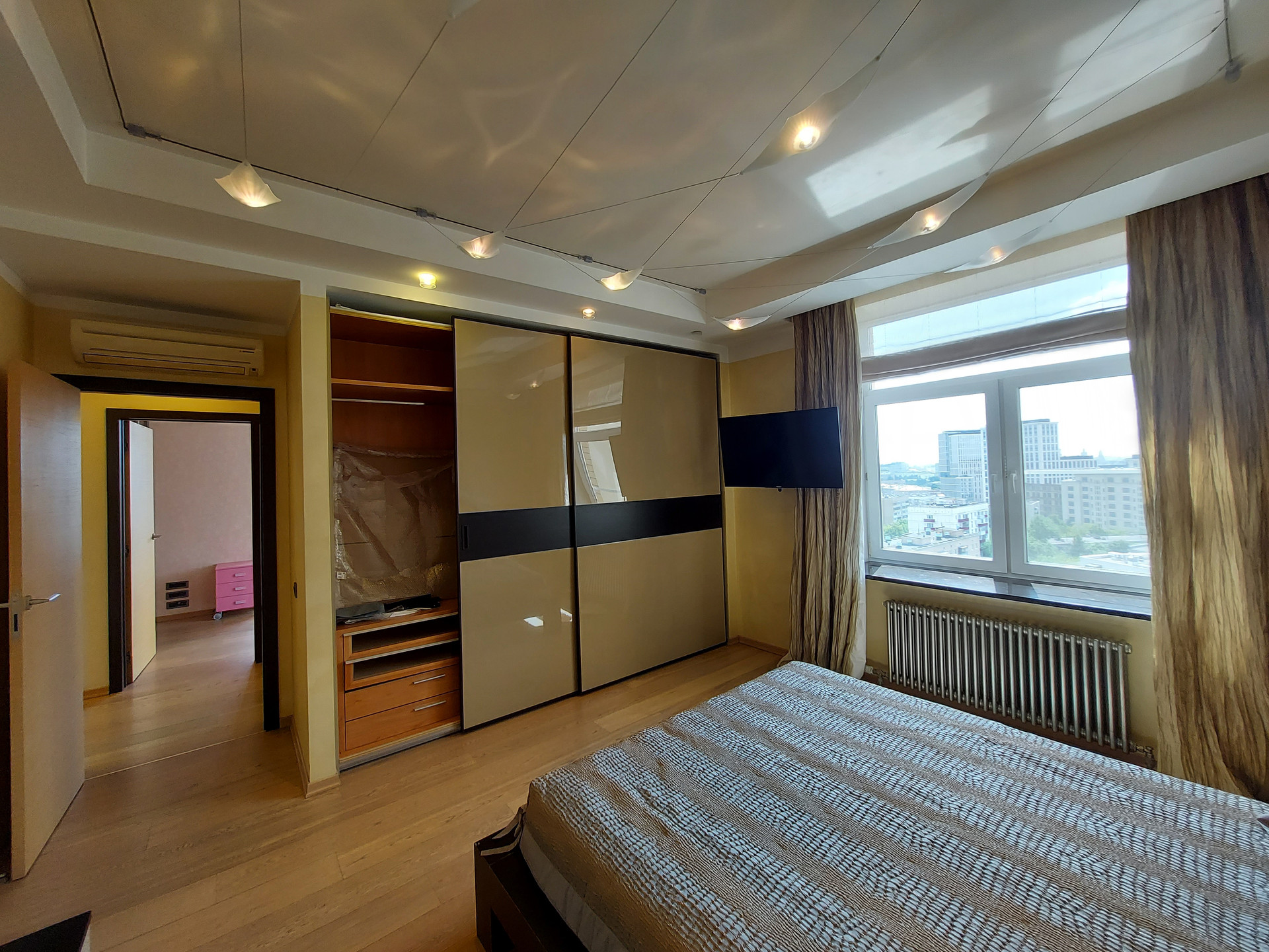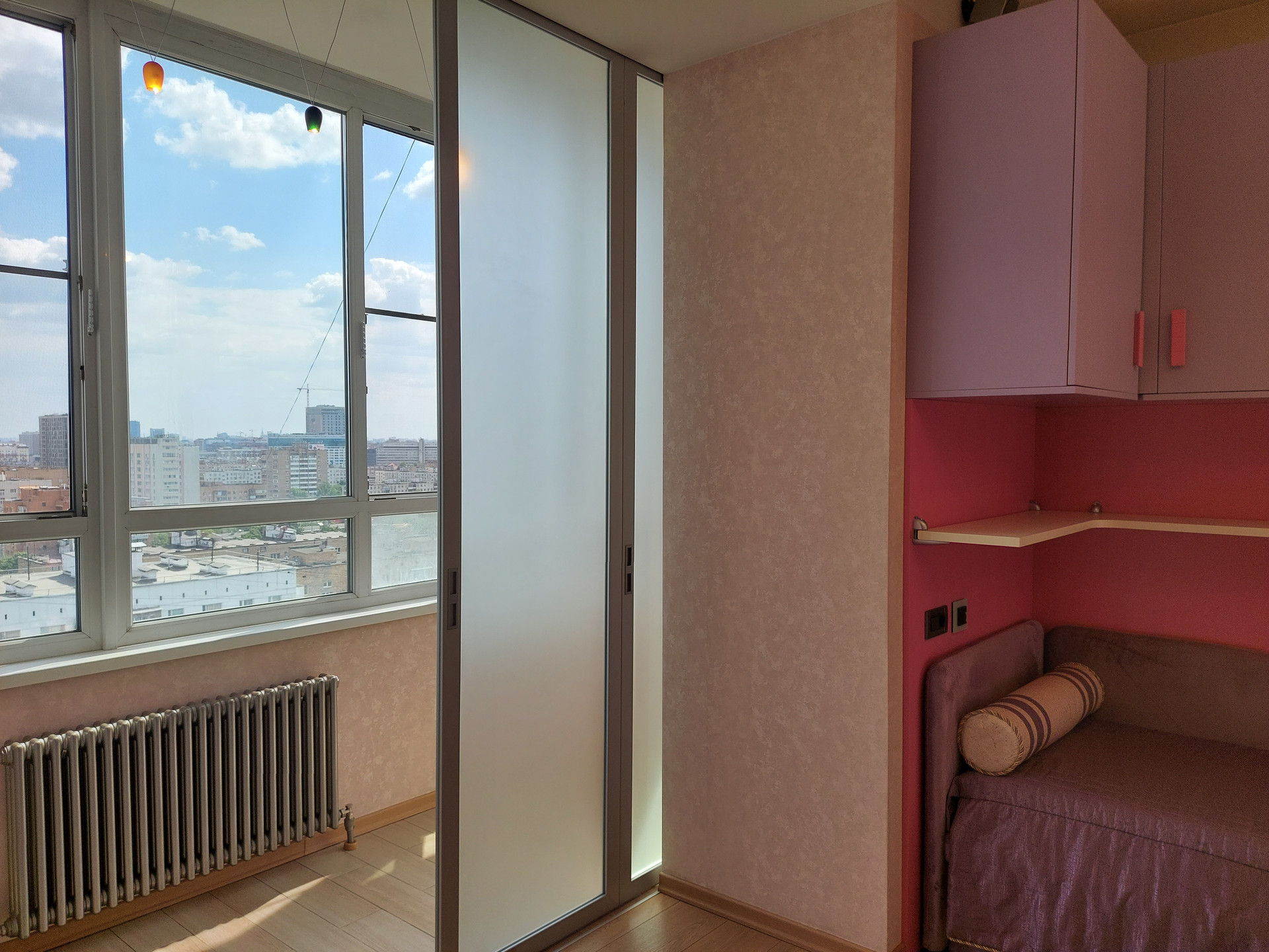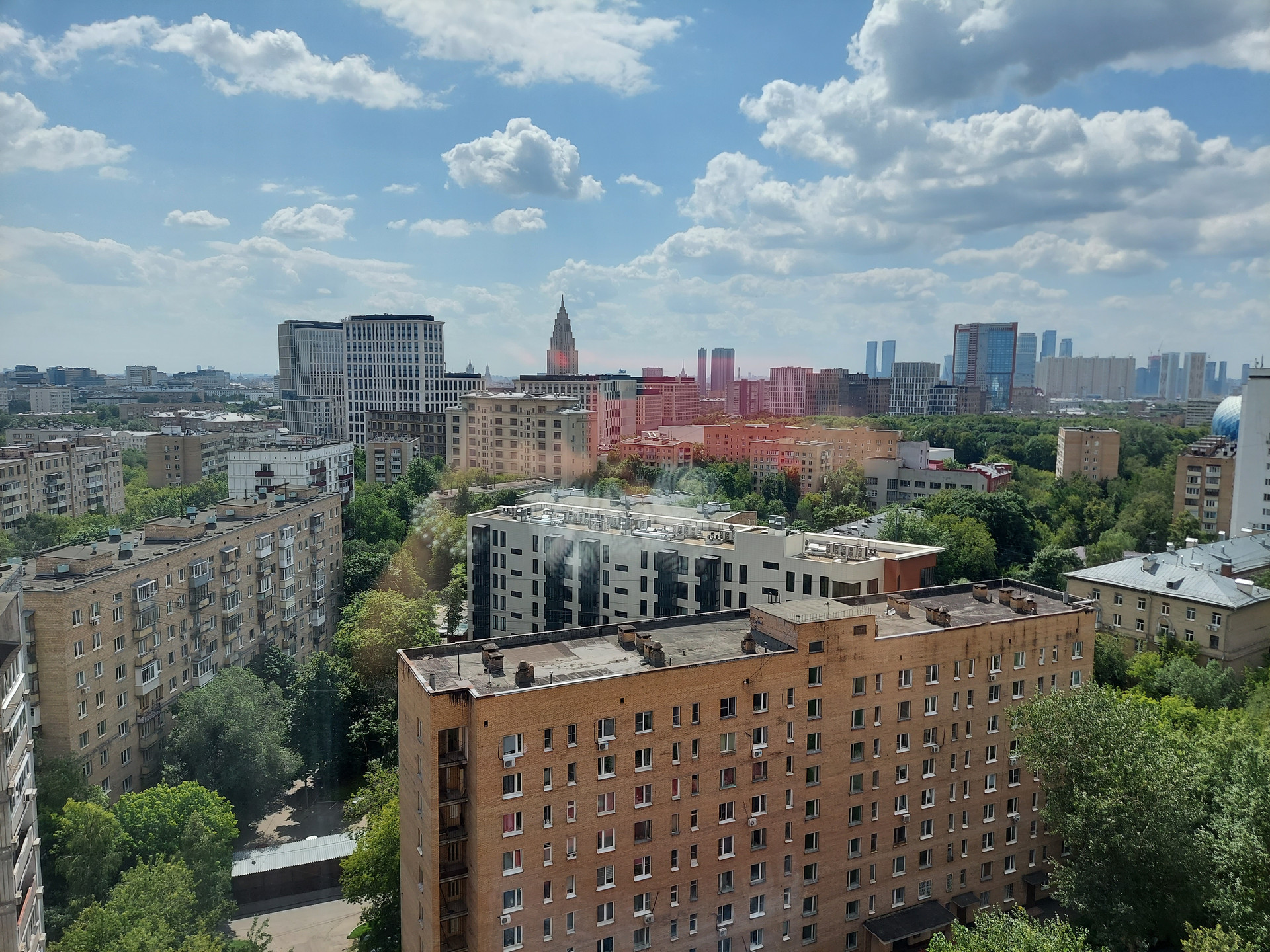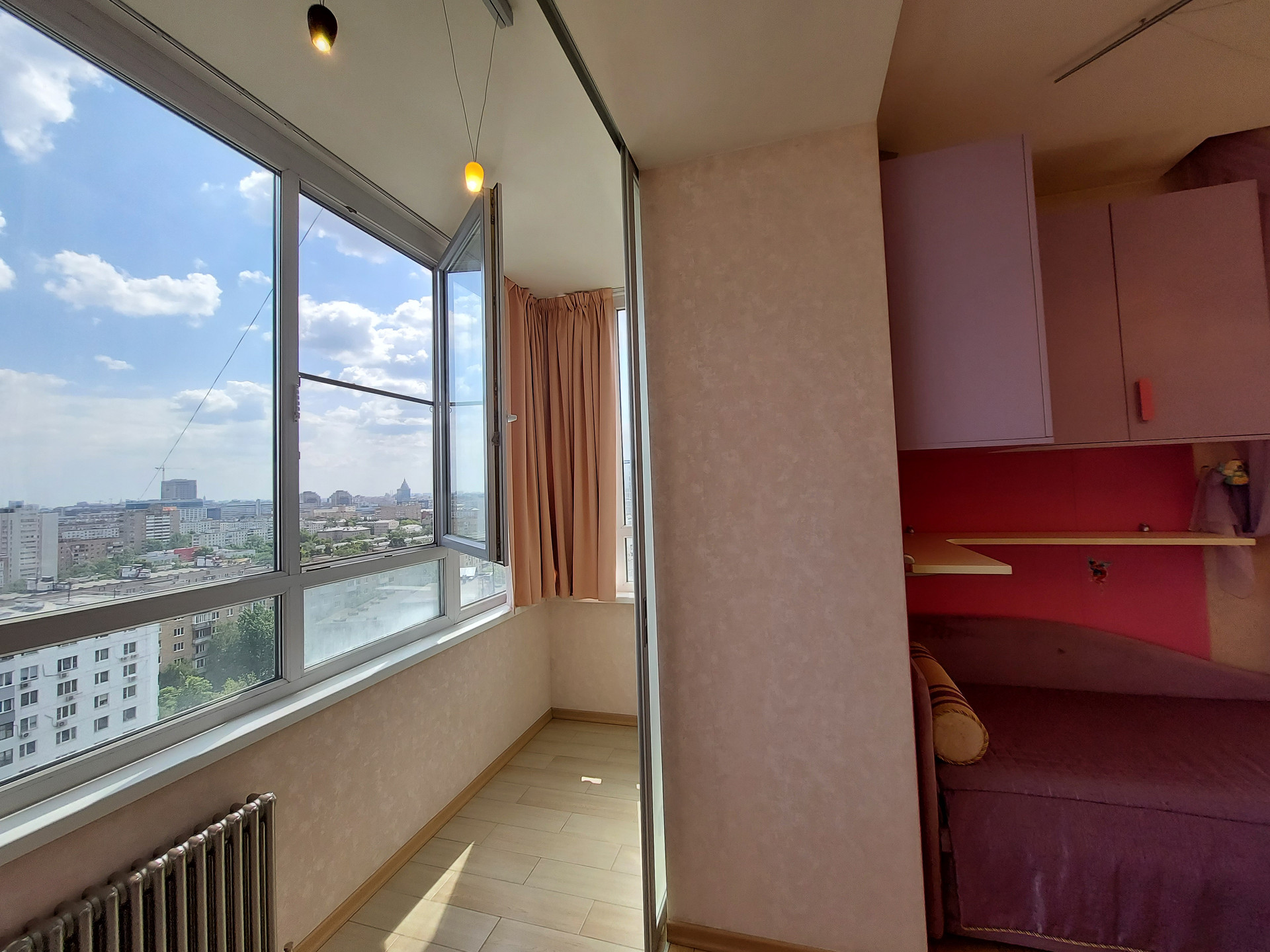 Окна квартиры на 2 стороны, все во двор и за счет 15го этажа с прекрасным видом на город. Тихо, зелено. ТСН.