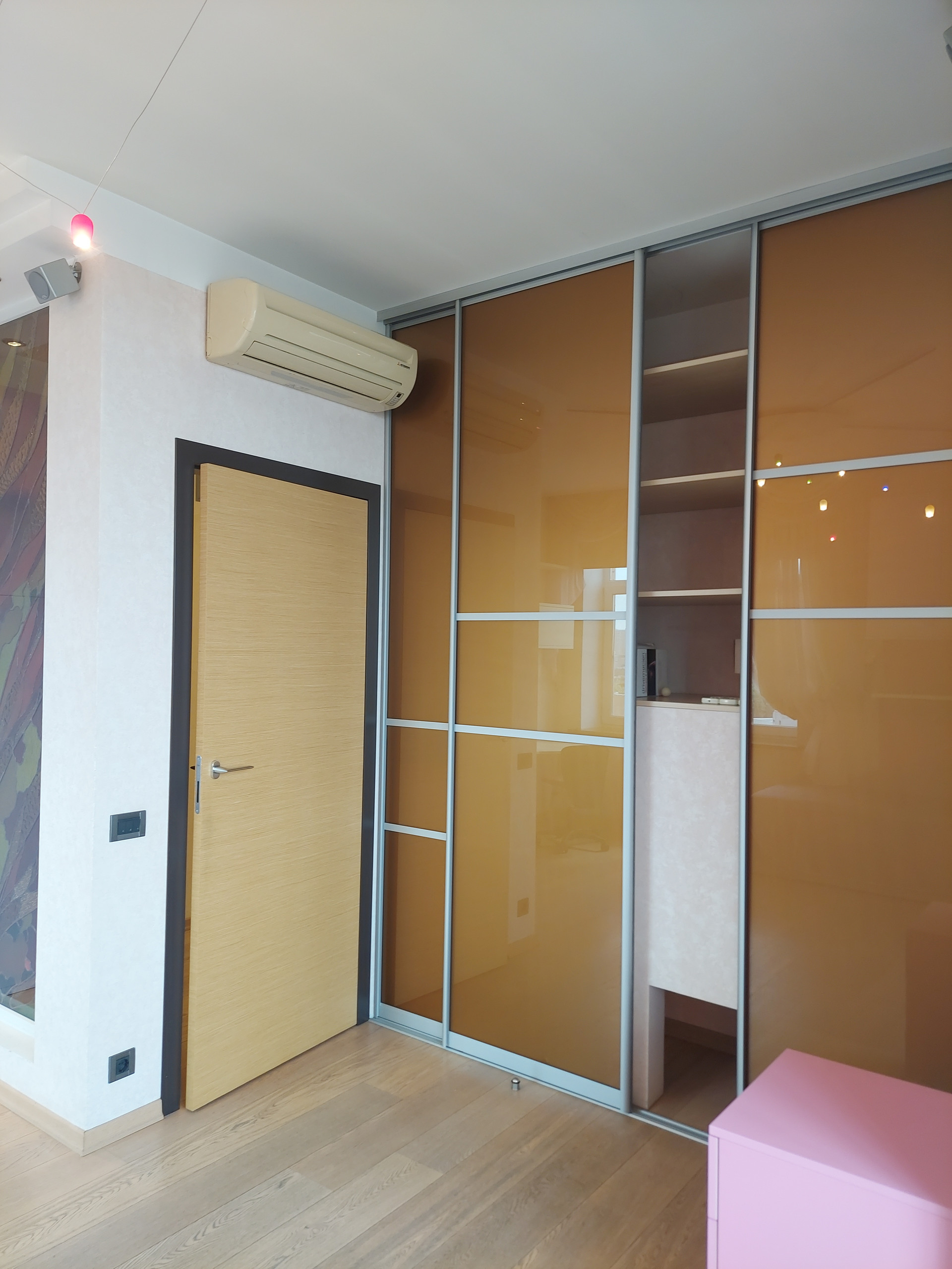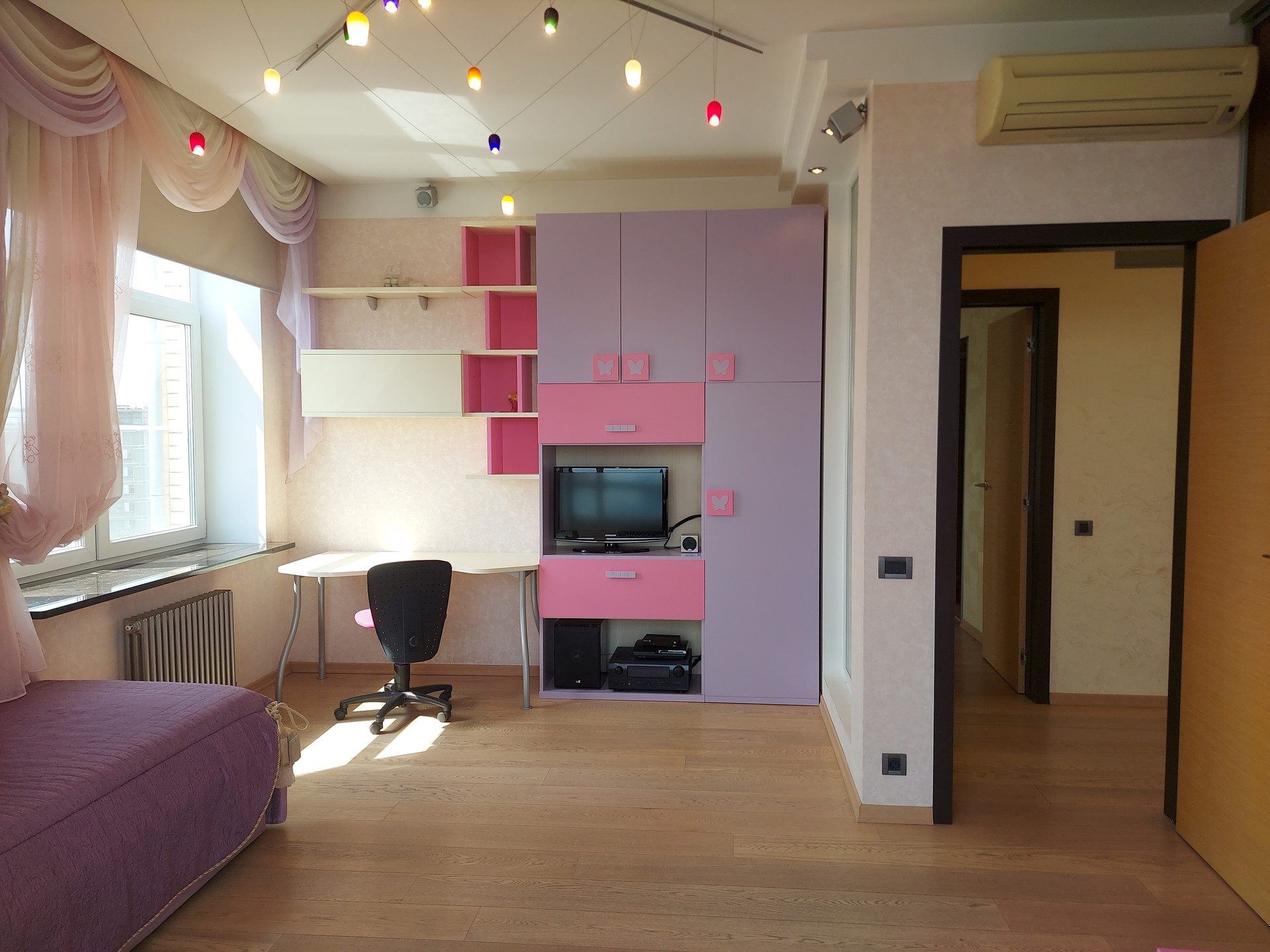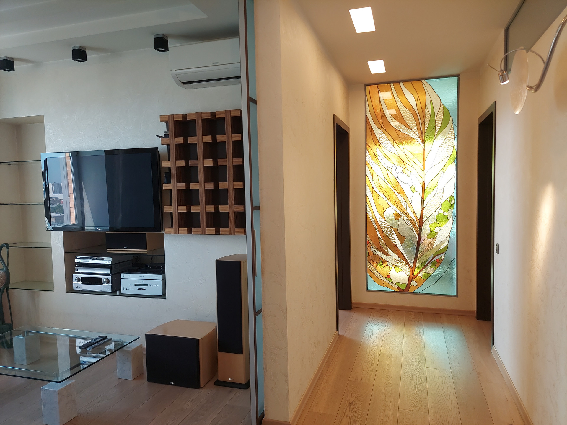 В каждом помещении установлены сплит системы. В санузле установлены бойлер, фильтр тонкой очистки воды, датчики давления, счетчики воды. Подогрев полов в коридоре, зоне кухни, лоджиях и санузлах. Полы в комнатах и гостиной паркетная доска.
