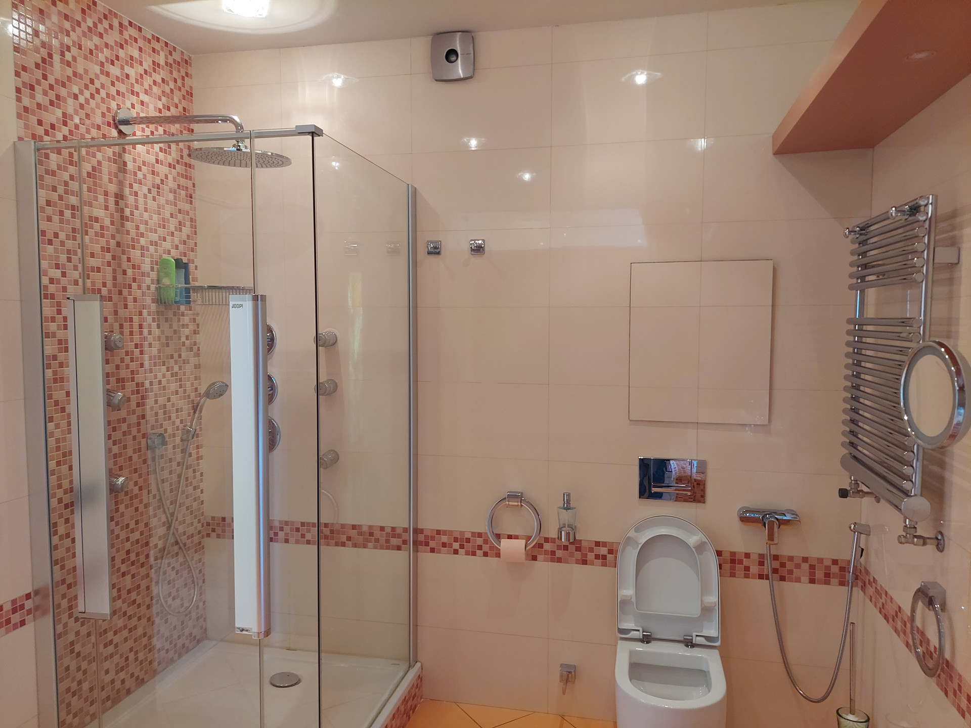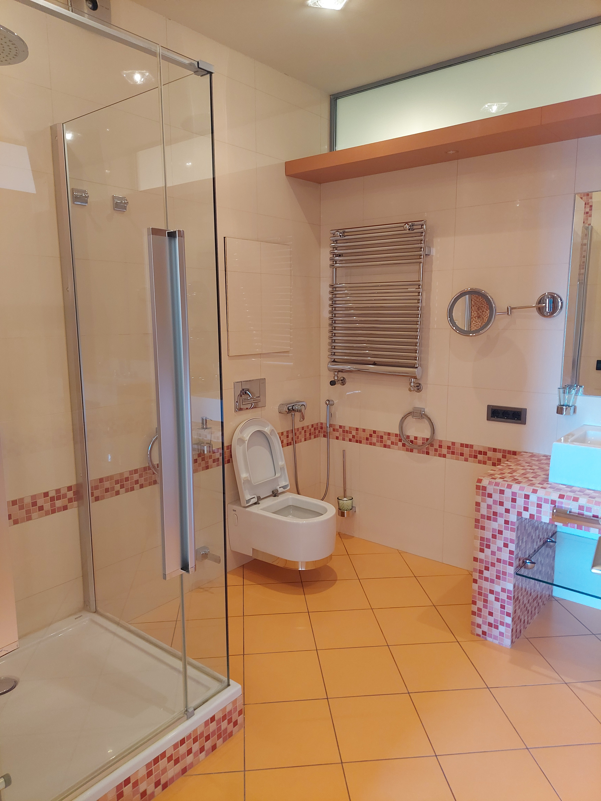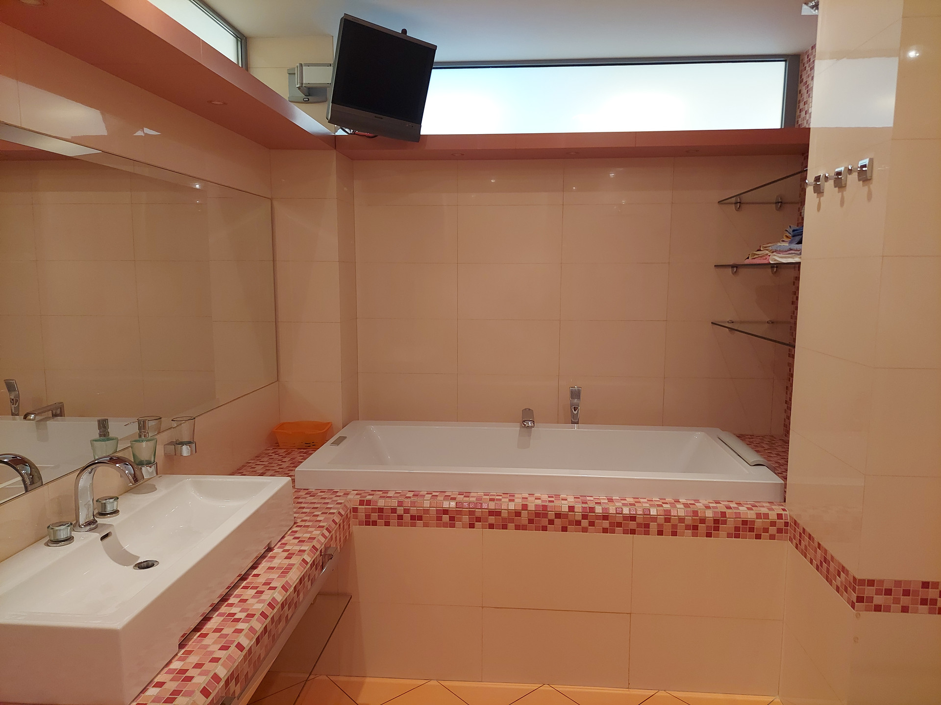Санузлы совмещенные. В ванной комнате, расположенной в мастер спальне: душевая кабина и ванная; телевизор, аудиосистема. Во втором санузле только душевая кабина.