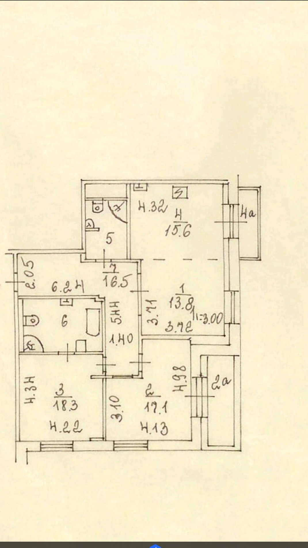 Общая площадь: при покупке у застройщика 108 м2, после перепланировок 98,8м2.