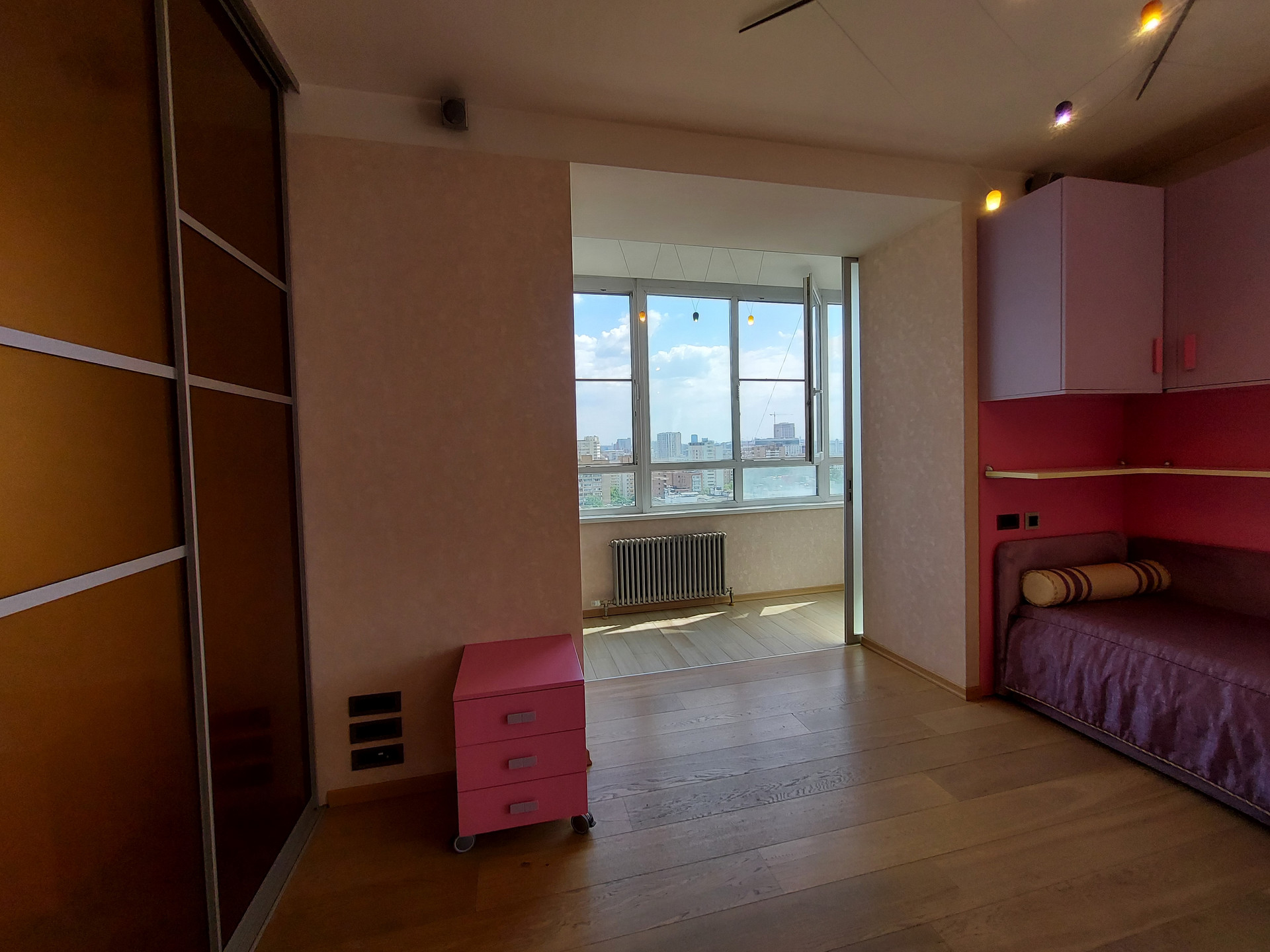 Лоджии панорамное остекление, утеплены, полы с подогревом, установлены раздвижные двери.