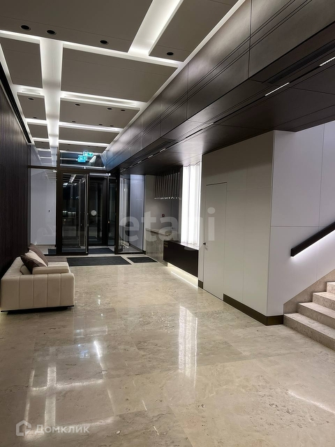 Входные группы оформлены в светлых тонах, в современном элегантном стиле с большими витражами.