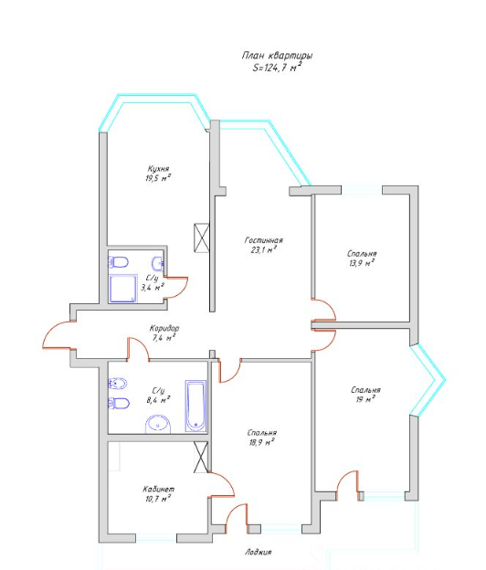 Общая площадь 124 м2