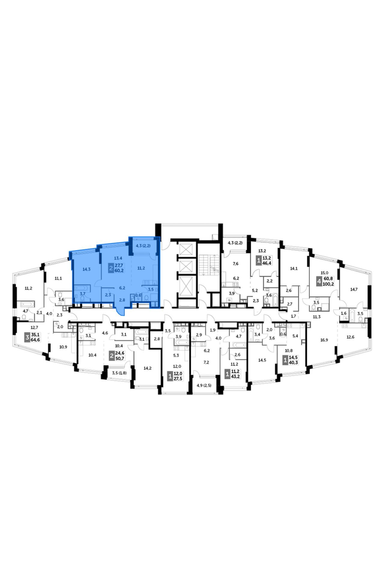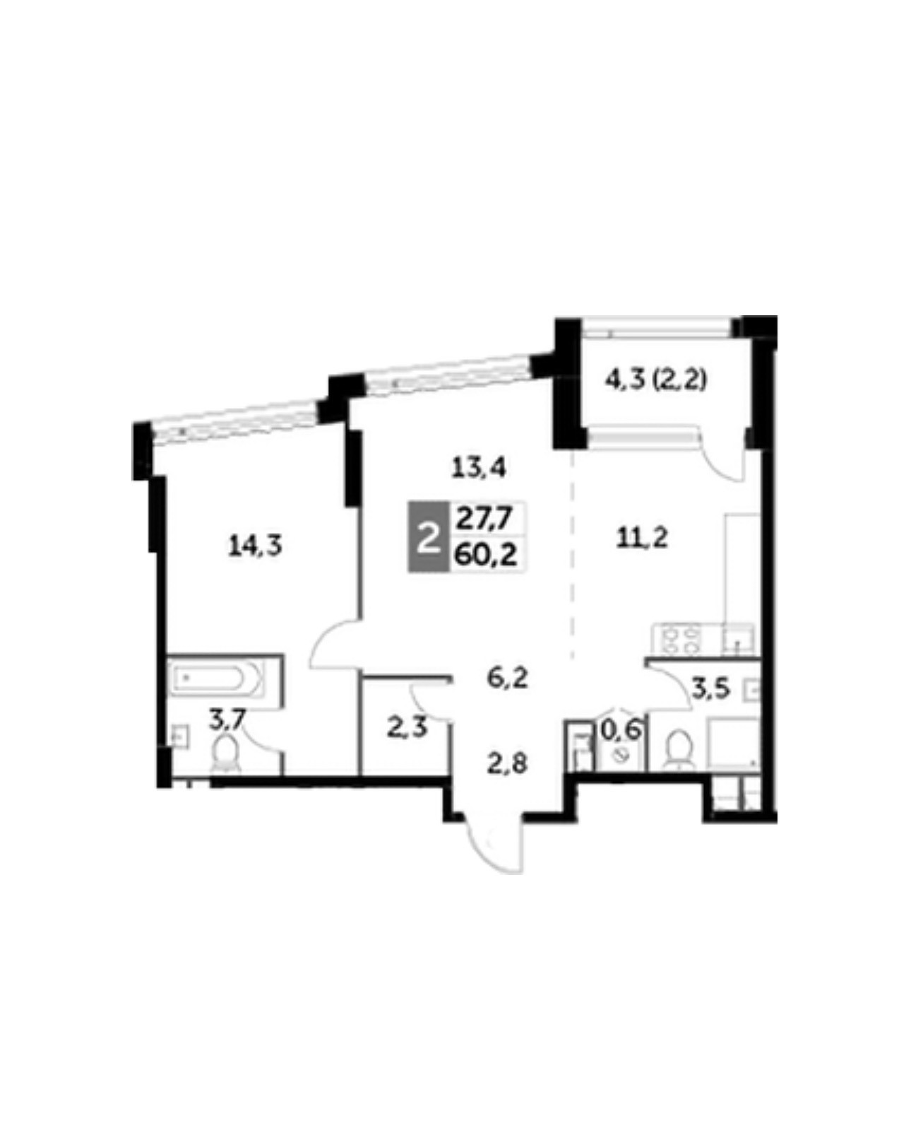 Общая площадь 60.2 м2