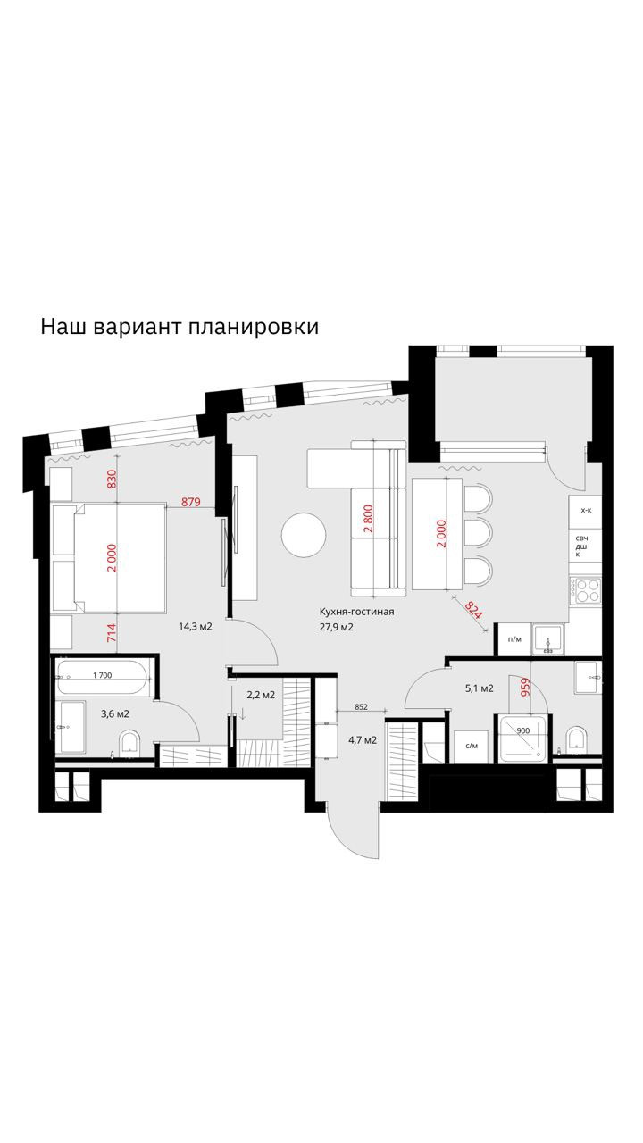 Высота подоконников 0,6 метра, высота окон от 2,1 метра Продуманные планировки квартир